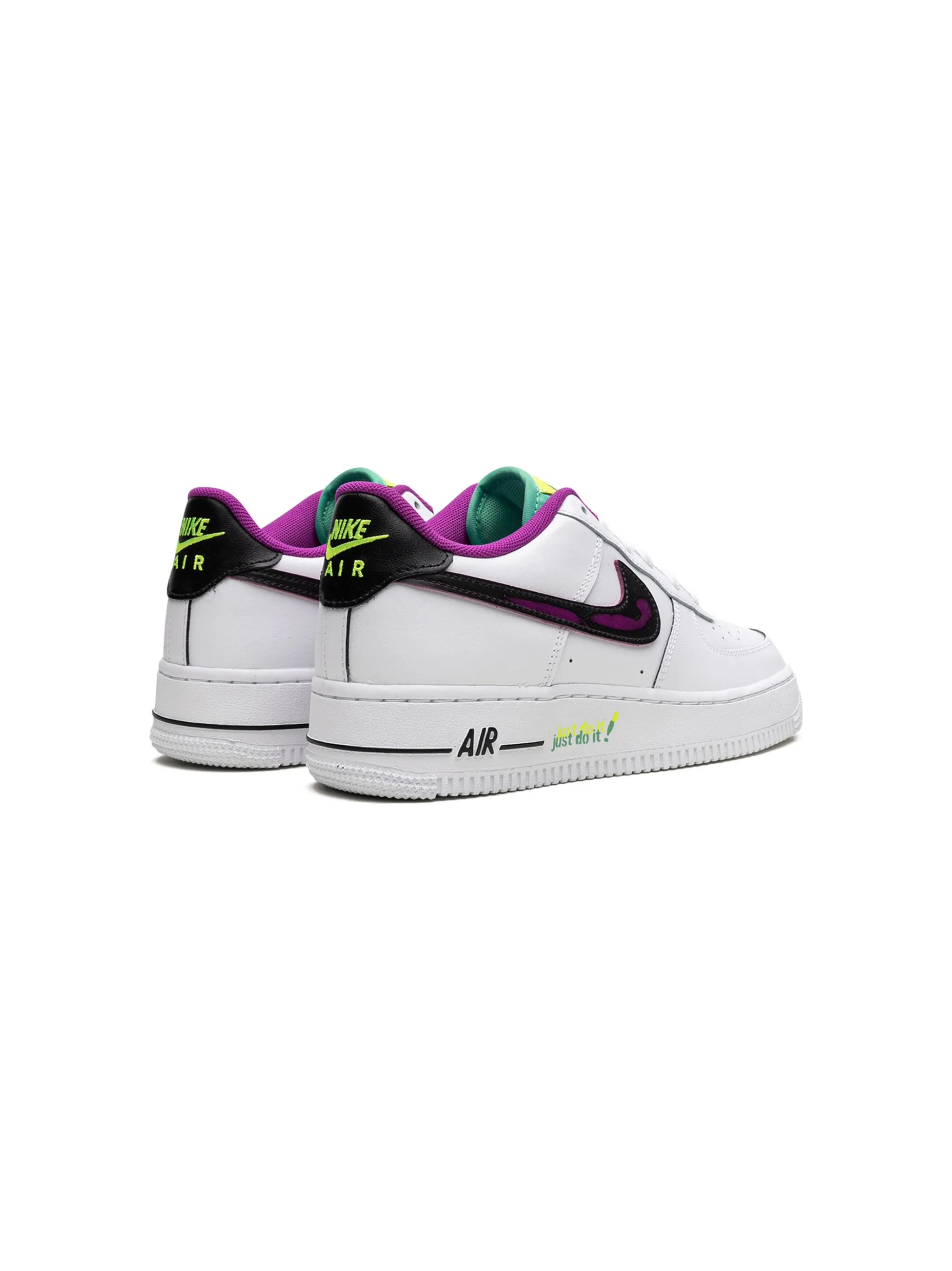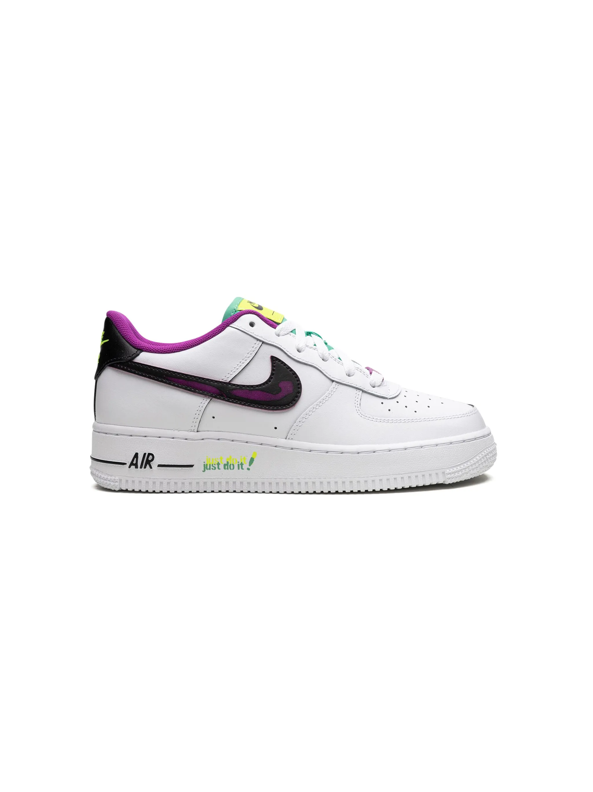 Белый/разноцветный, кожа, вставки, логотип Nike Swoosh, перфорированный носок, закругленный носок, шнуровка спереди, нашивка с логотипом на язычке, контрастный задник с логотипом и плоская резиновая подошва.