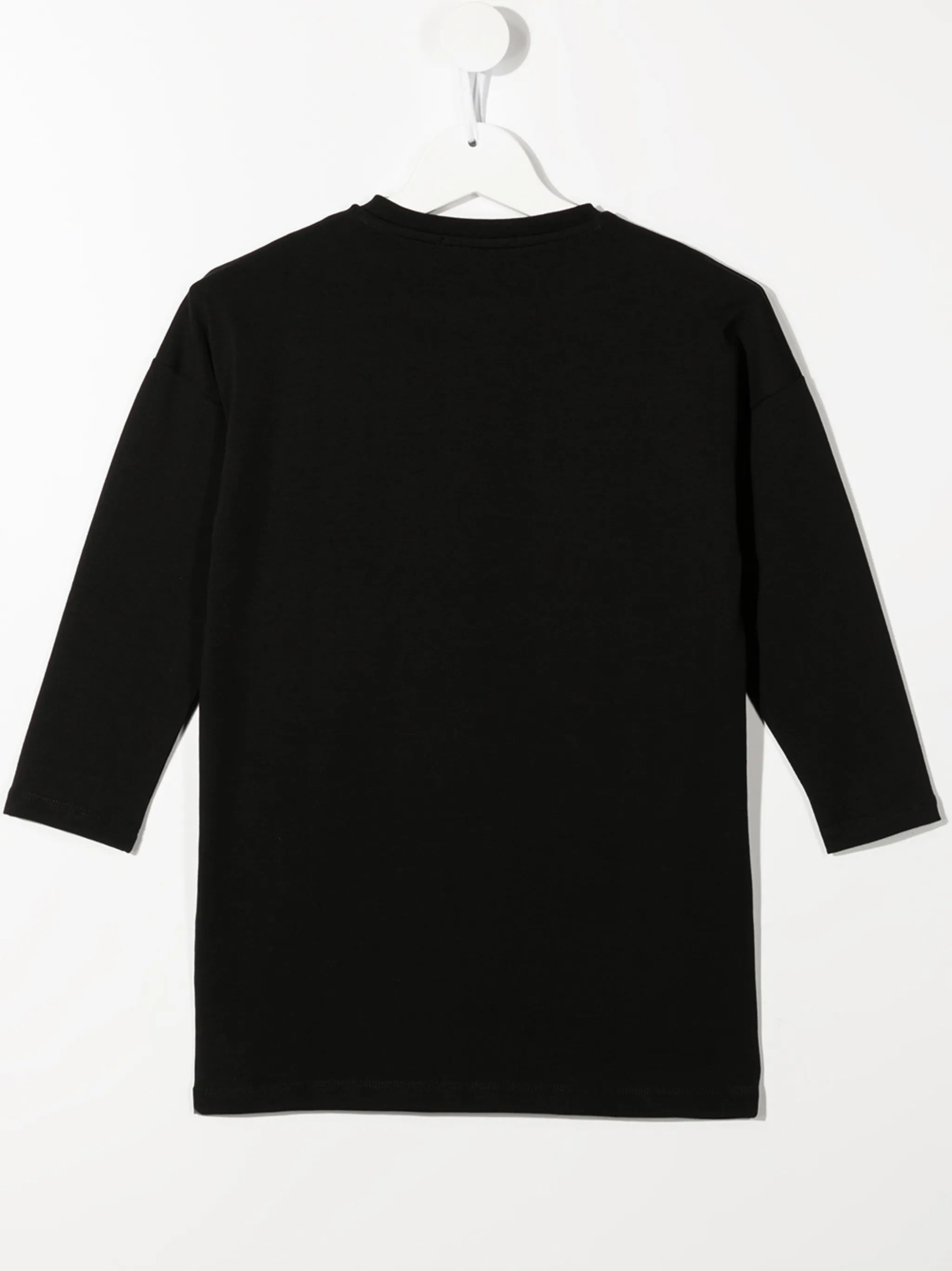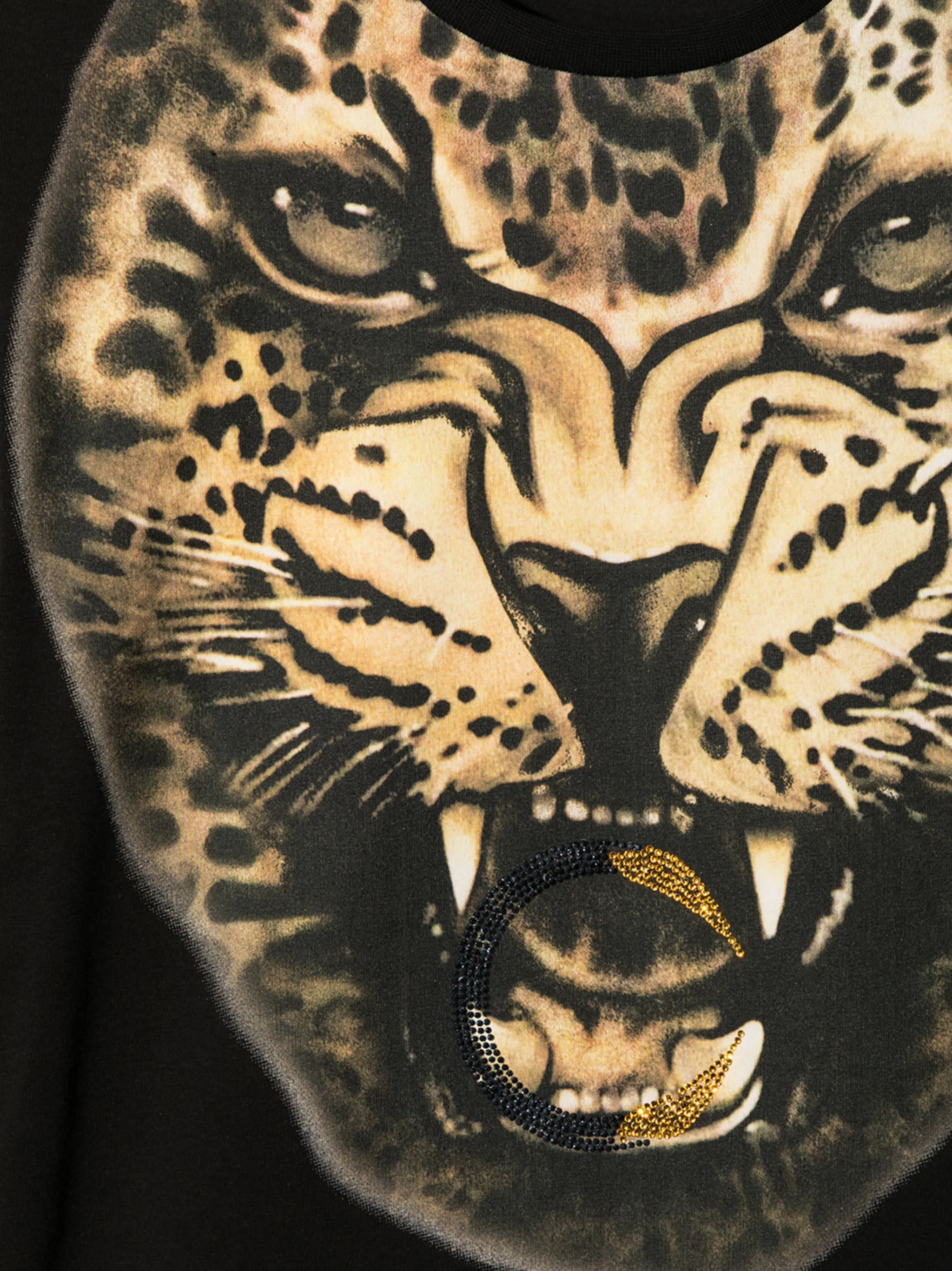Анималистичный принт, логотип из заклепок, круглый вырез, длинные рукава и силуэт трапеция.