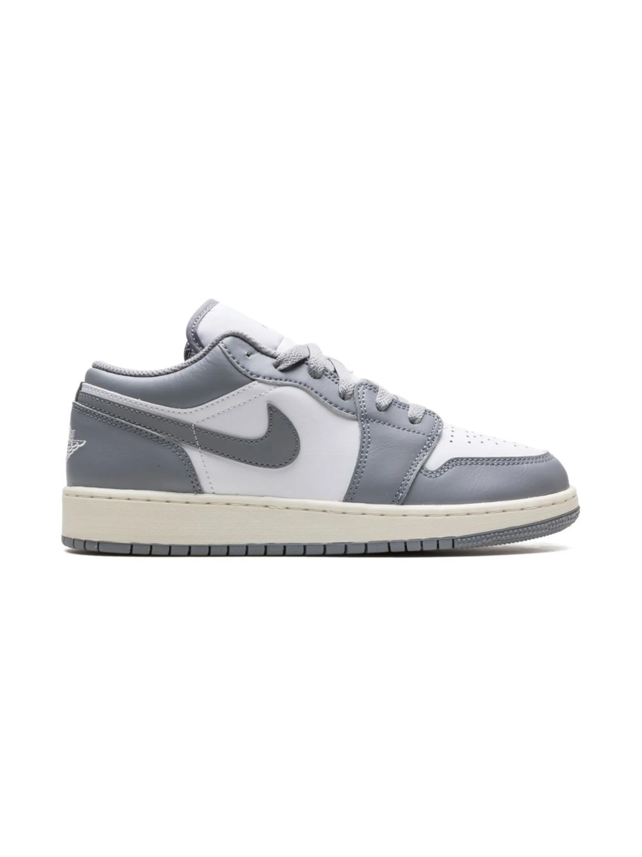 Серый/белый, кожа, логотип Nike Swoosh, логотип Air Jordan Wings, логотип Jumpman, перфорация, закругленный носок, шнуровка спереди, резиновая подошва и подошва с технологией Air.