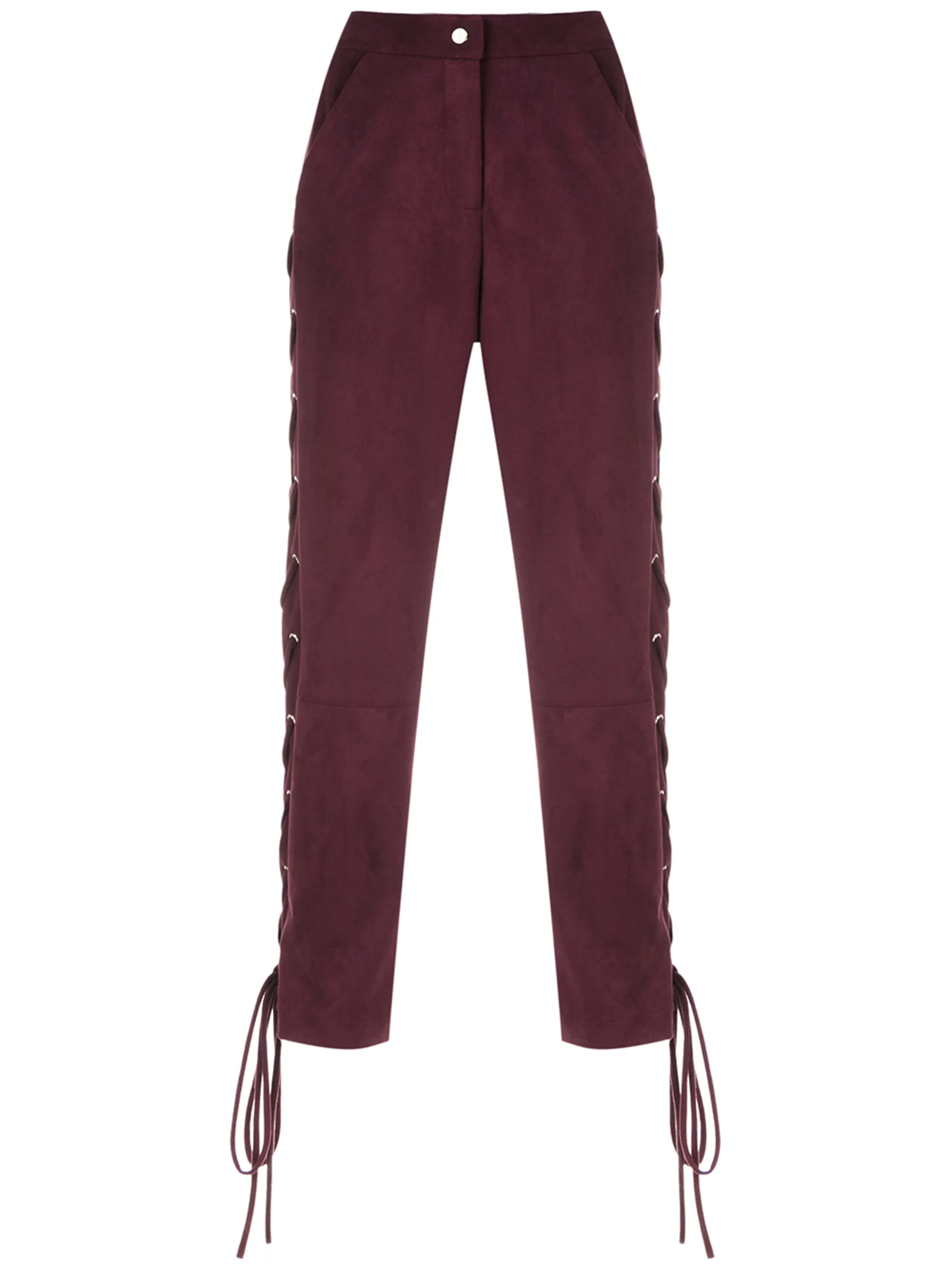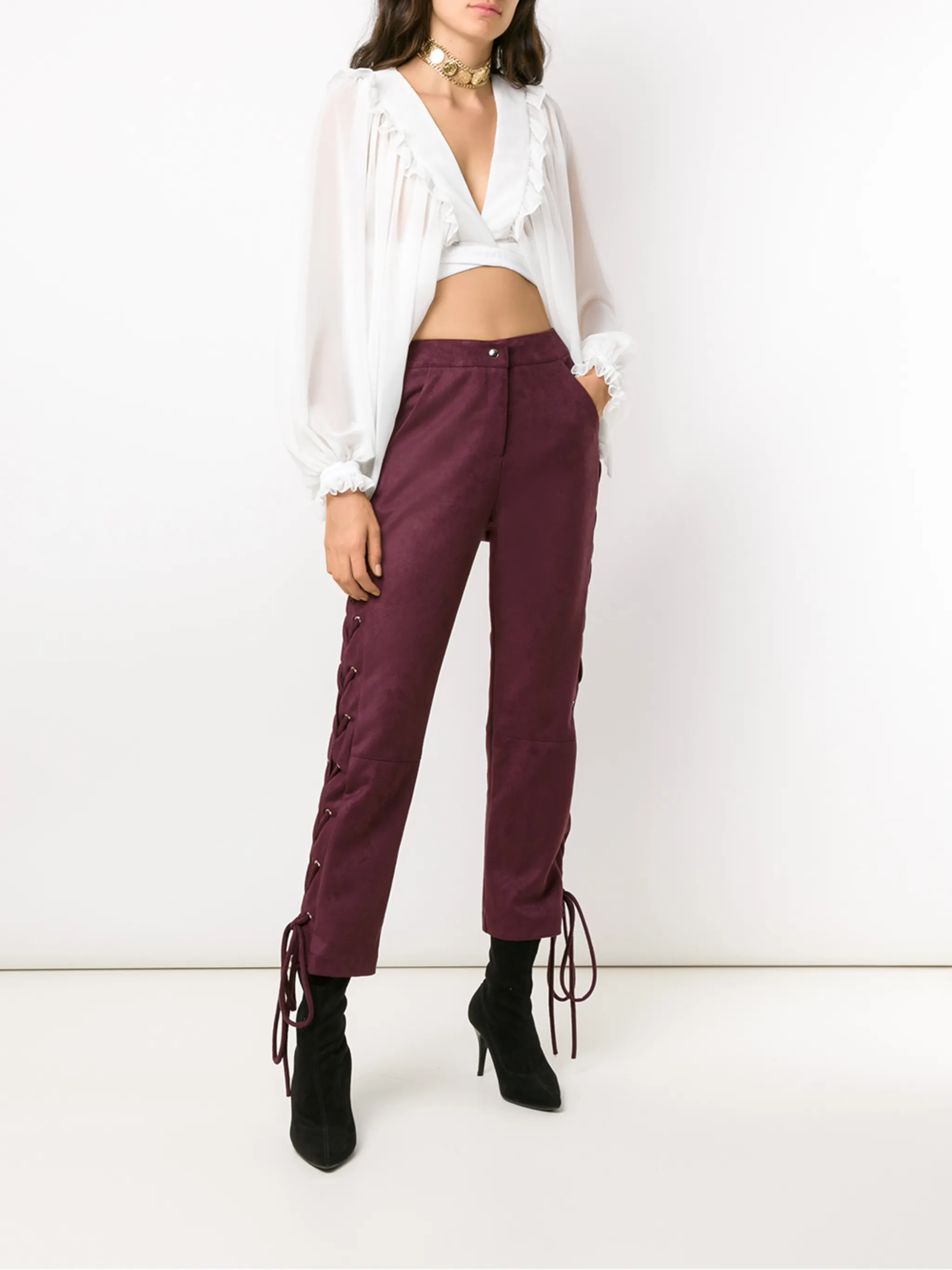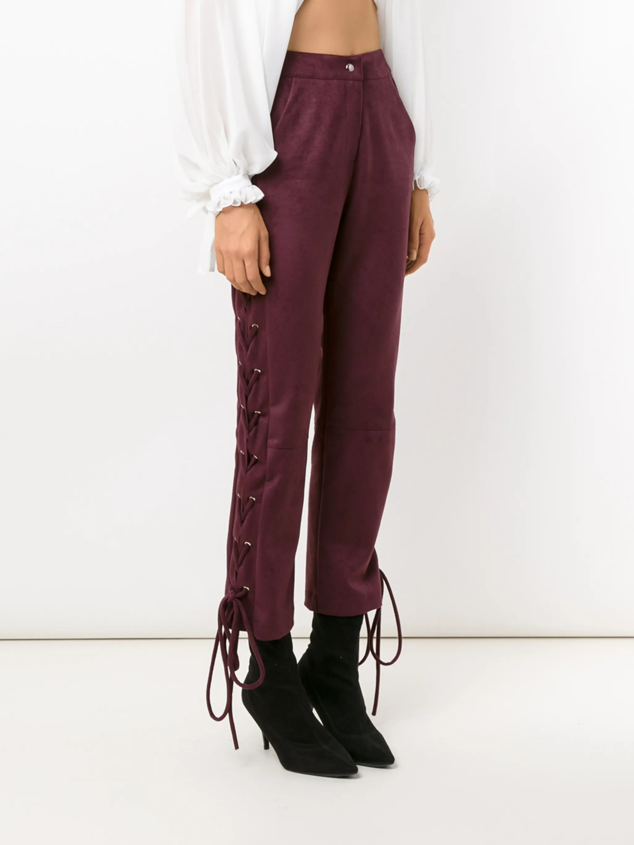 Укороченные брюки Napoles от Olympiah. Средняя посадка, застежка на пуговице и молнии, шнуровка и два передних кармана.