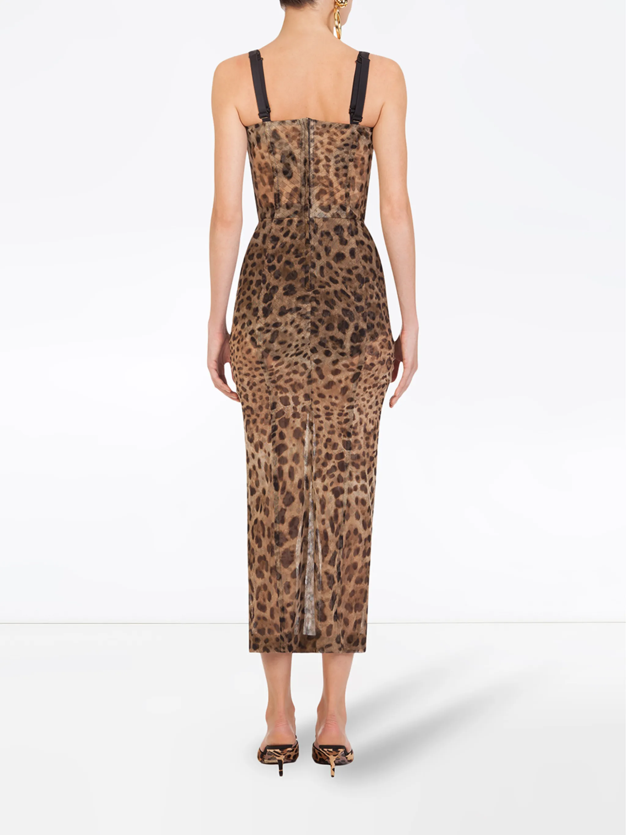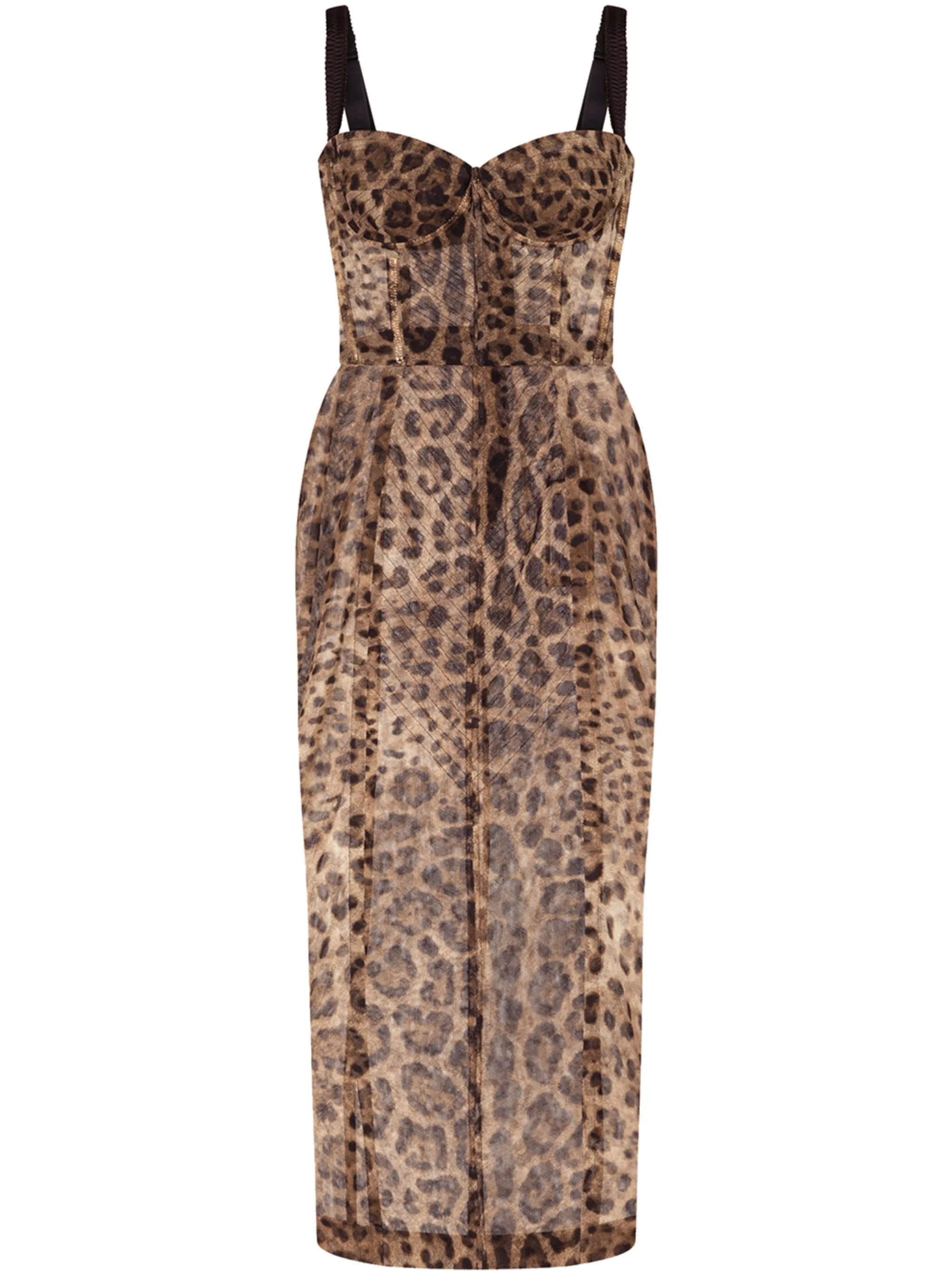 Платье с бюстье и леопардовым принтом Dolce & Gabbana, коричневый