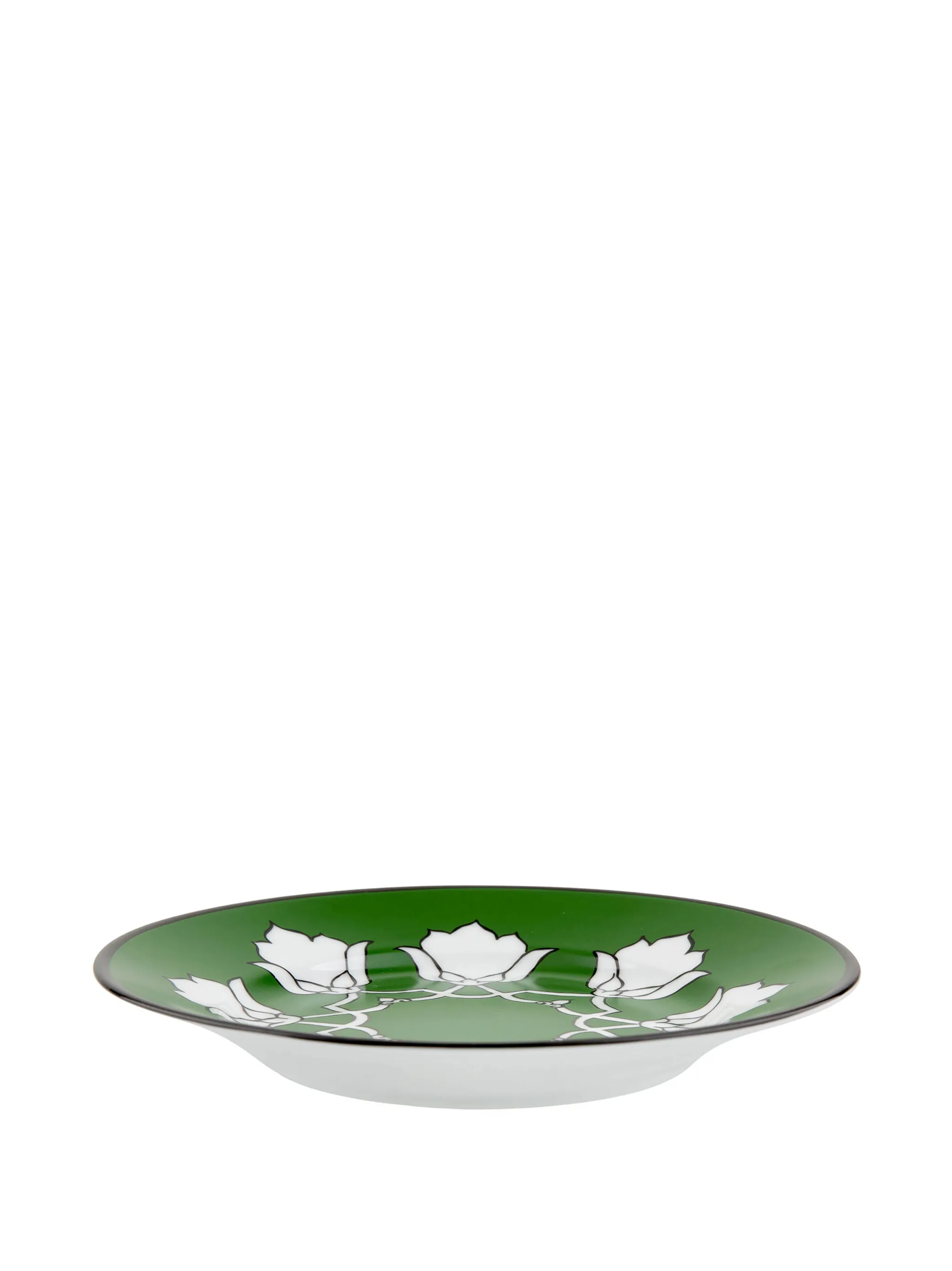 Темно-зеленый, фарфор, сплошной цветочный принт, круглая форма и глазурованное покрытие.