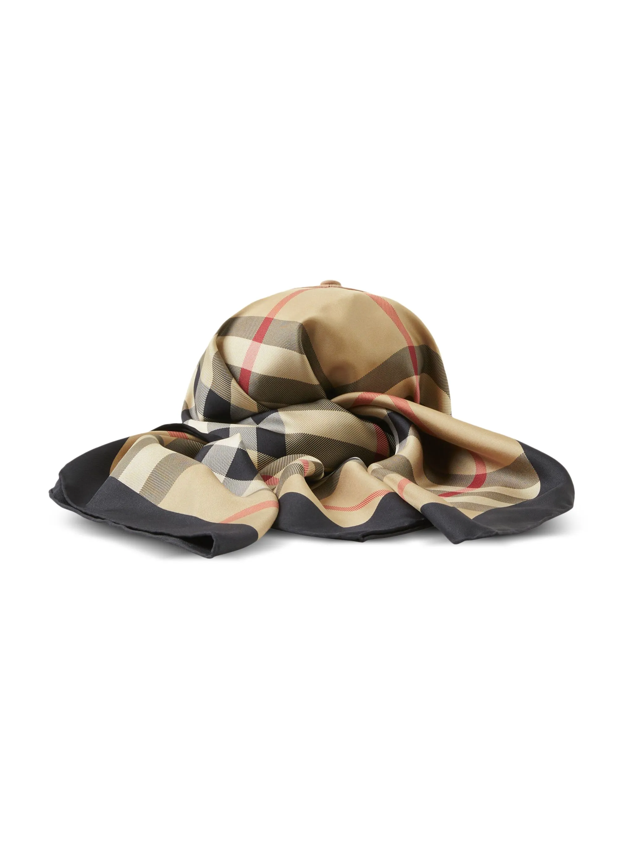 Винтажный бежевый, хлопок, шелк, клетчатый принт Vintage Check, вышитый логотип спереди, декоративный шарф, закругленный козырек и застежка на завязке сзади.