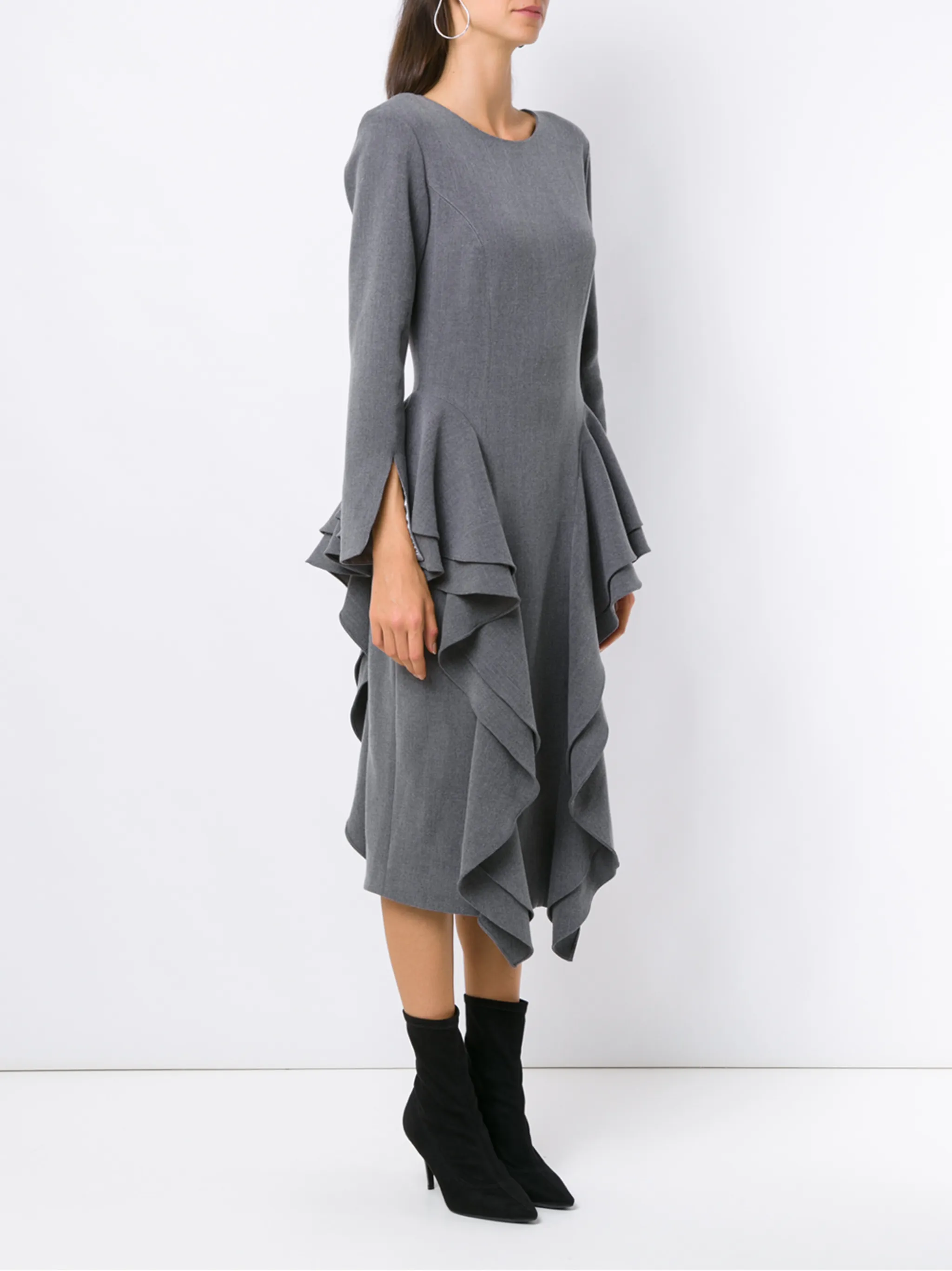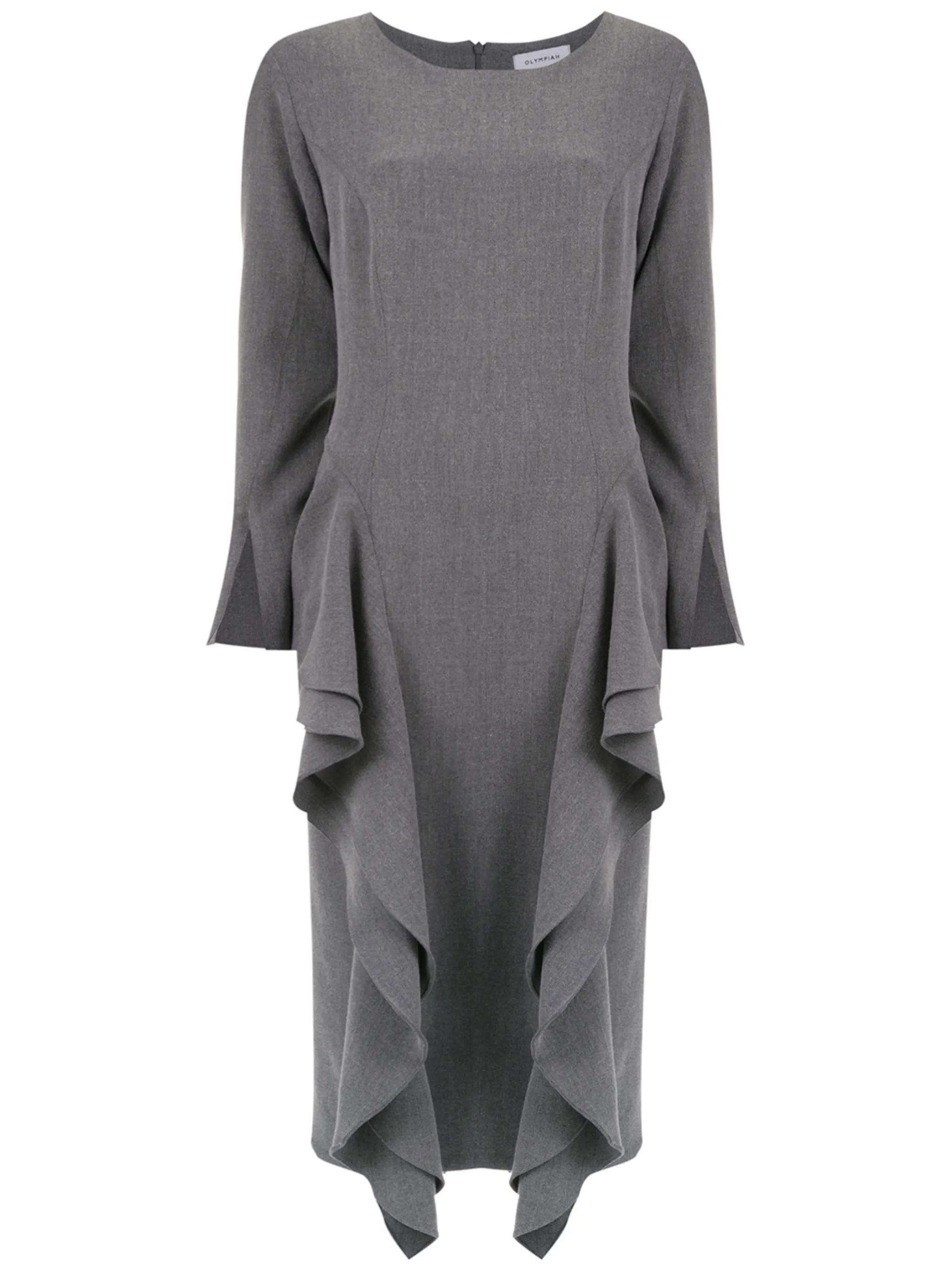 Платье миди 'Chipre' от Olympiah. Круглый вырез, модель с декоративными оборками, длинные рукава и средней длины.