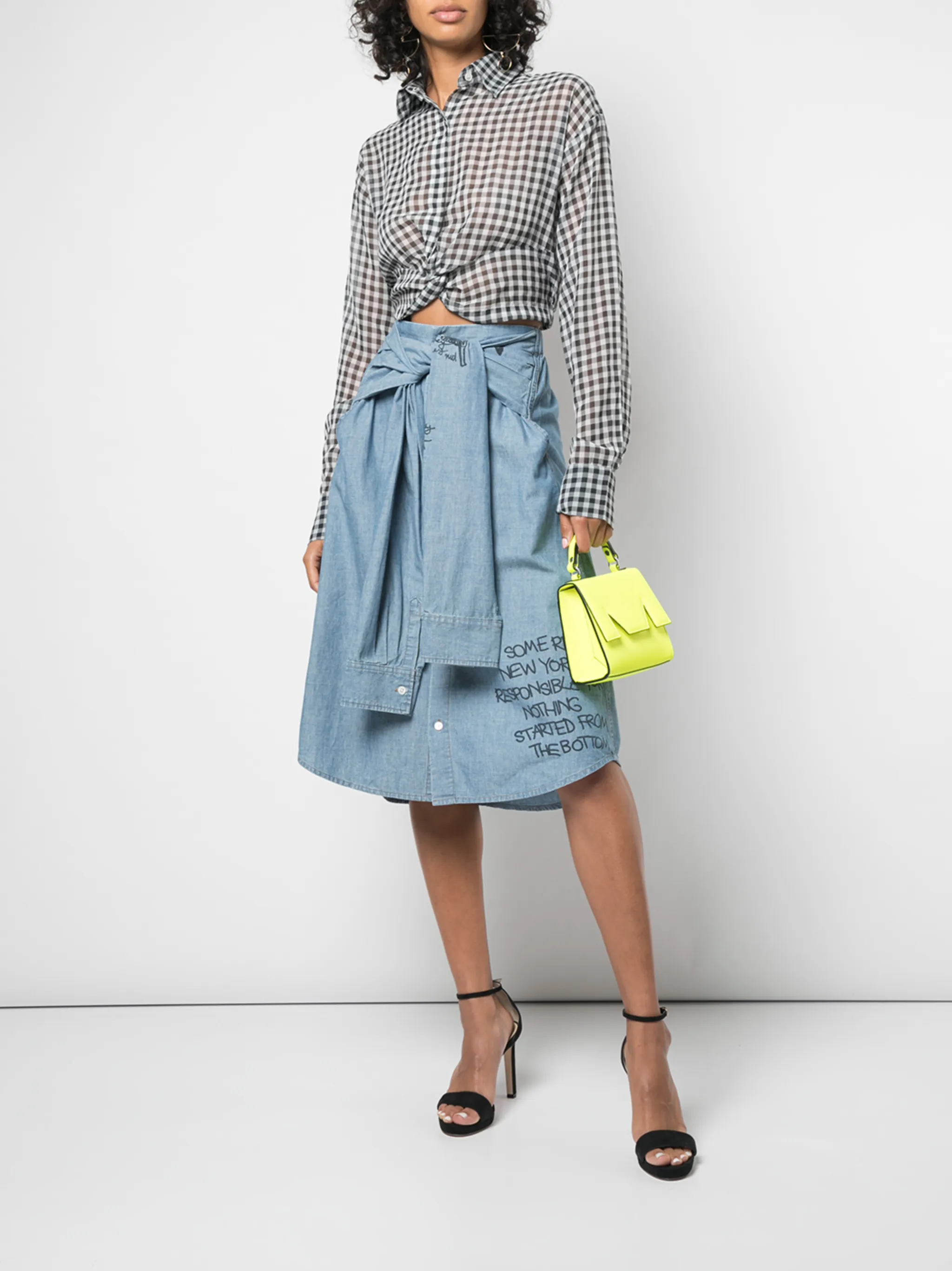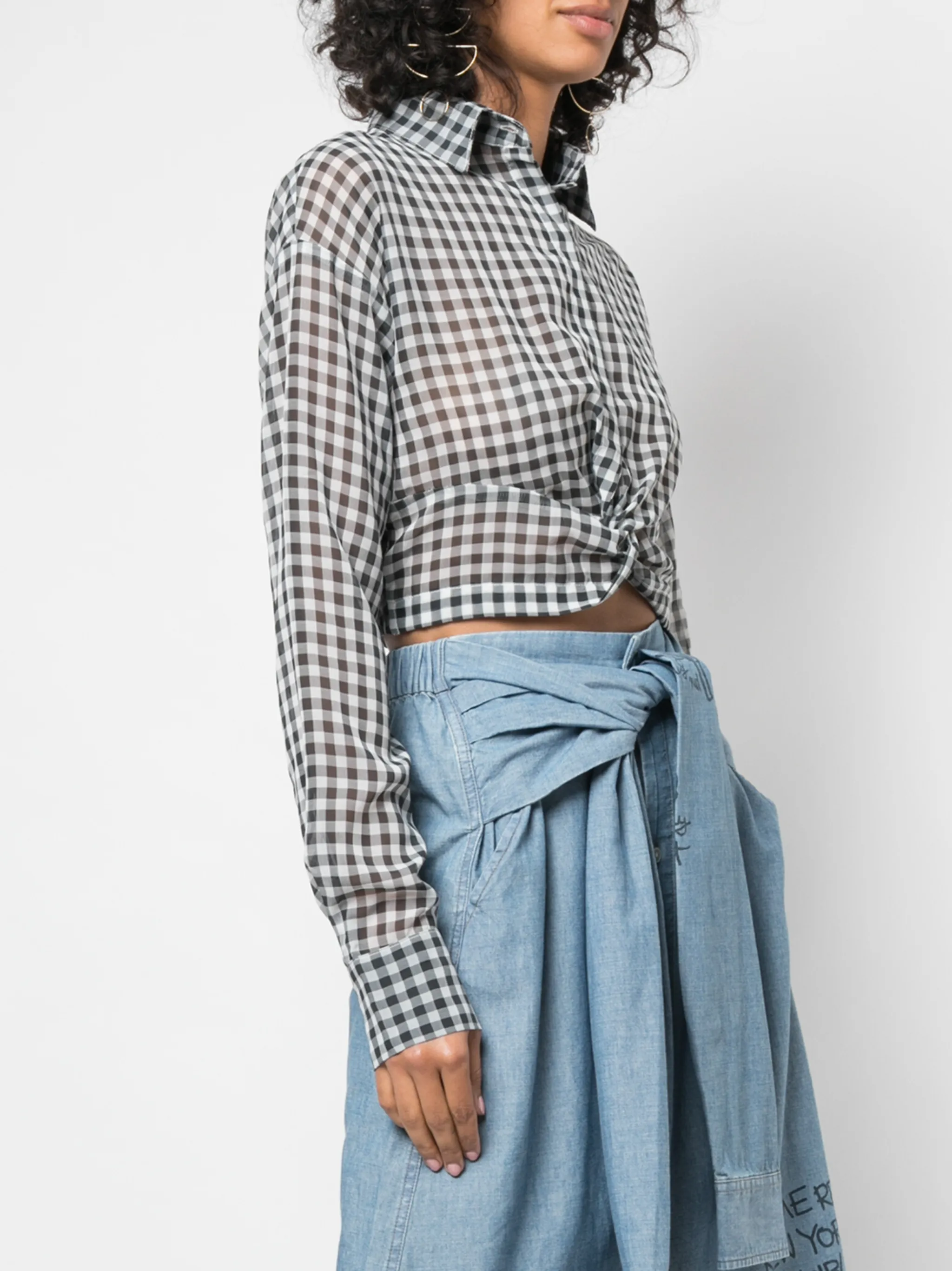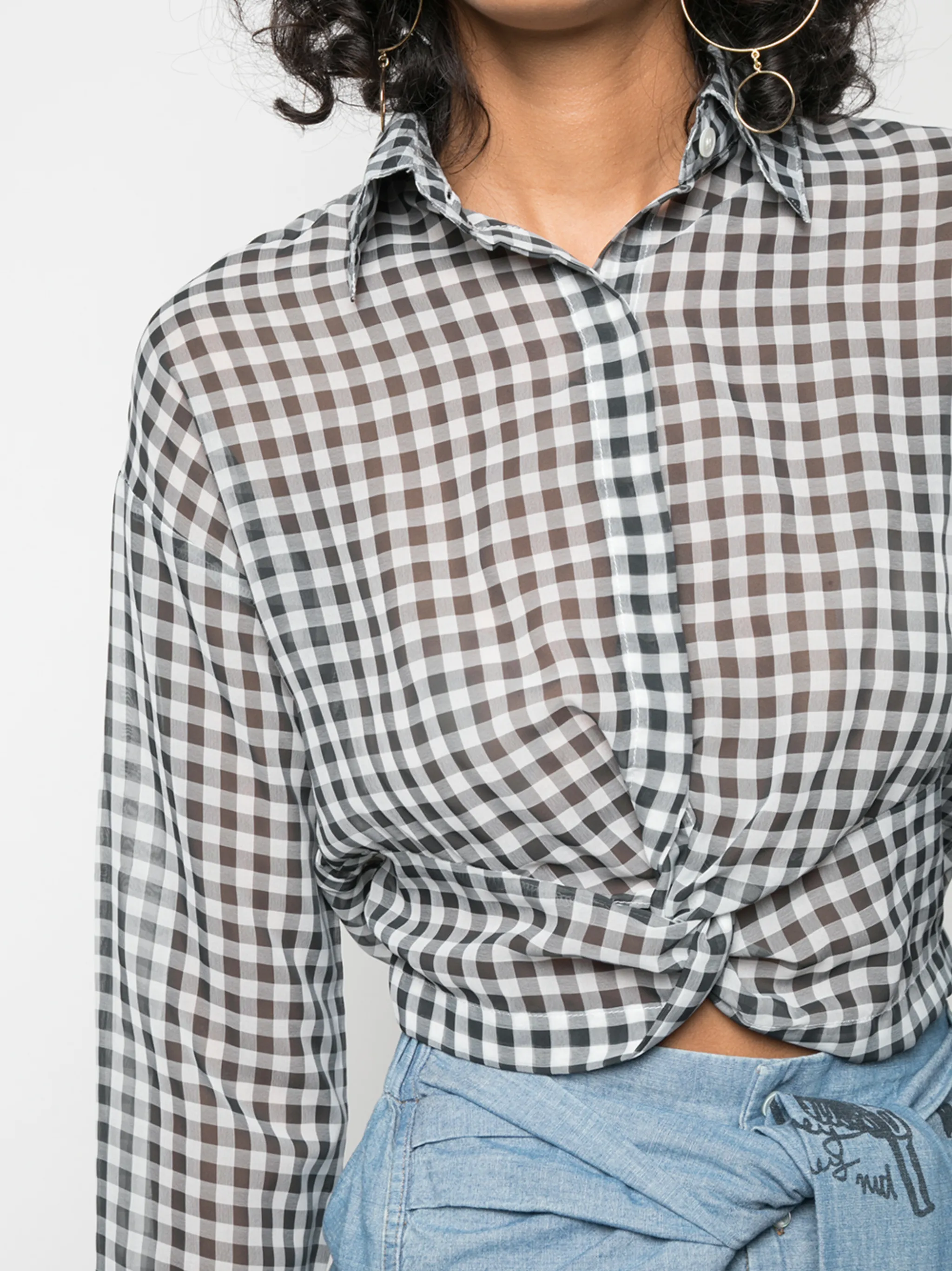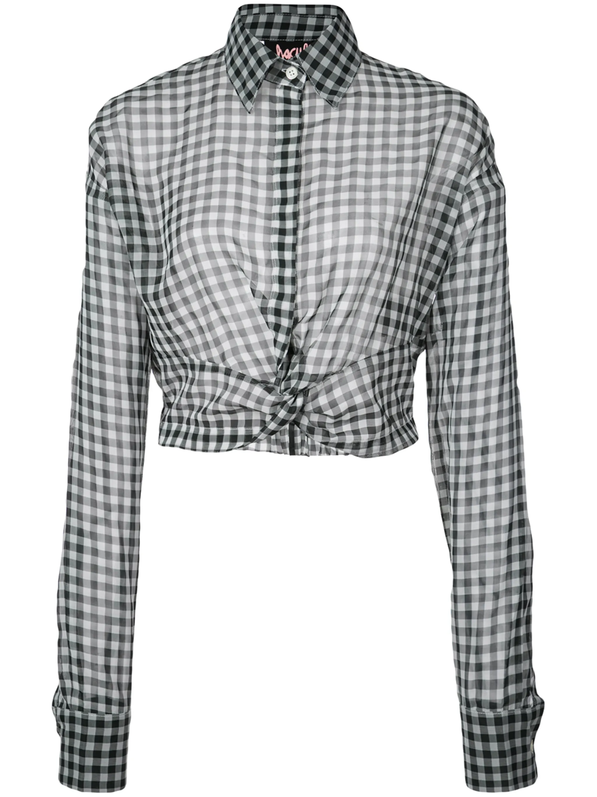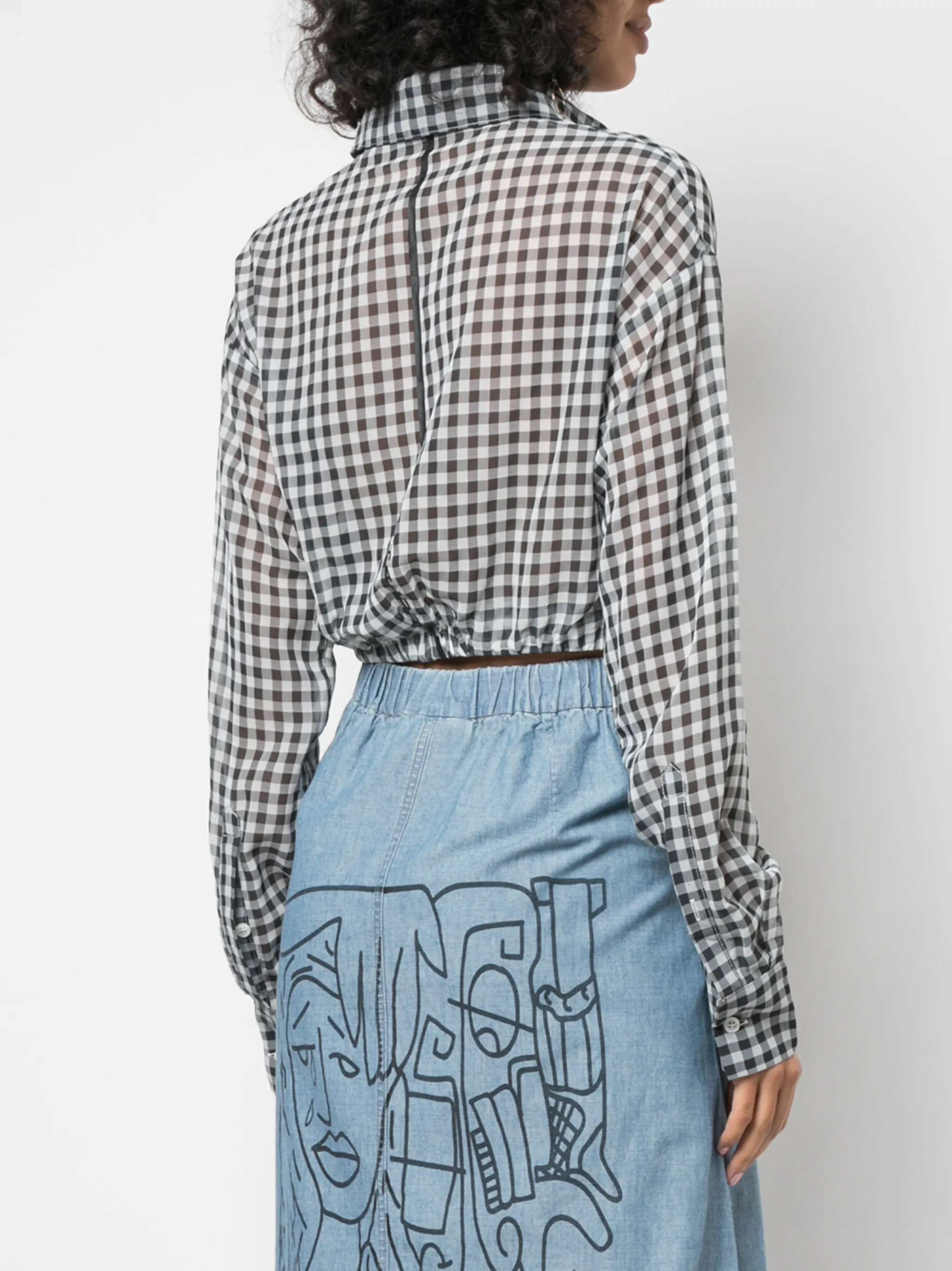 Блузка в клетку от Haculla. Классический воротник, прозрачный дизайн, рукава в стиле 'Джульетта' и обрезанная длина. Цвет: белый.