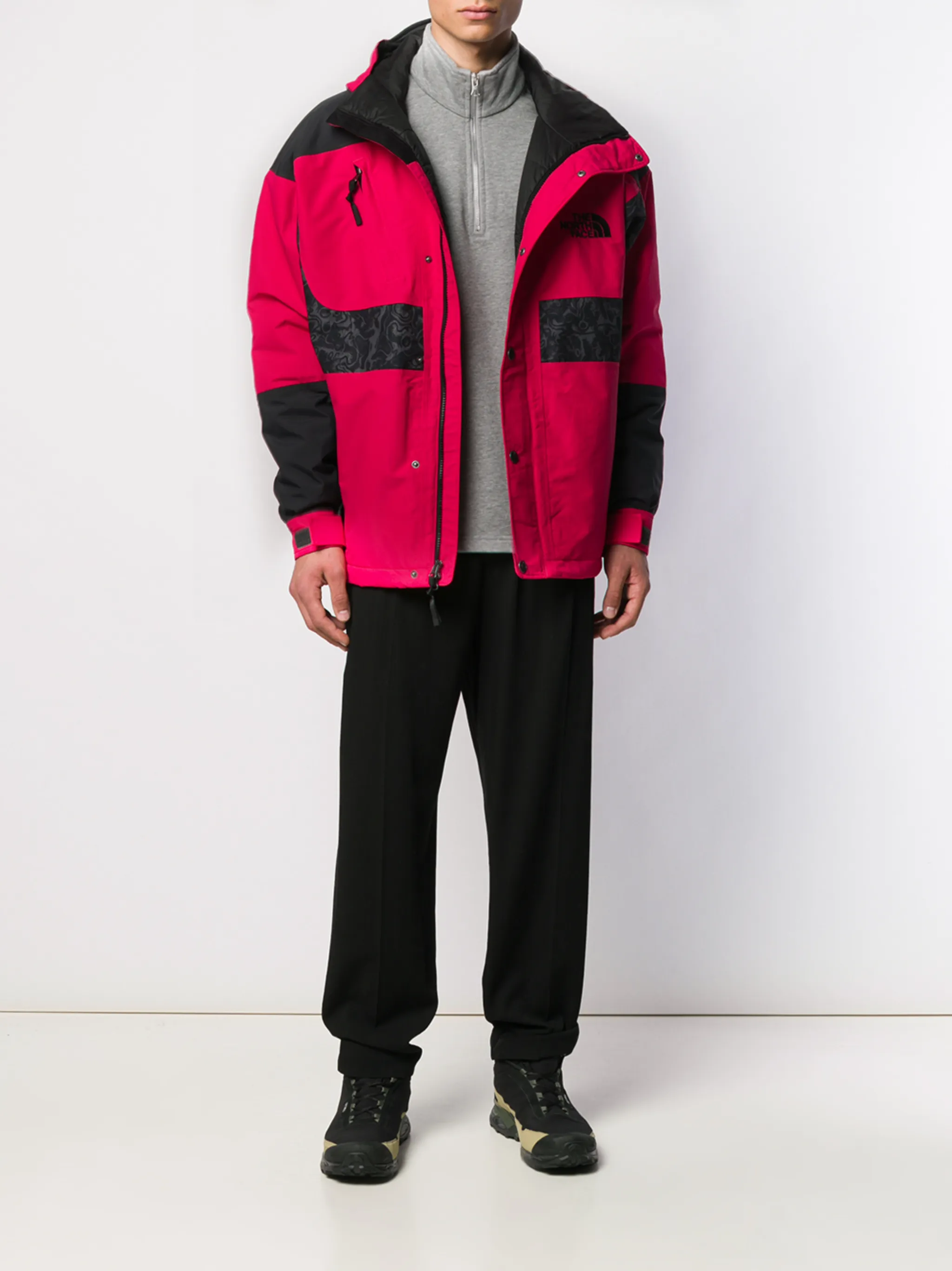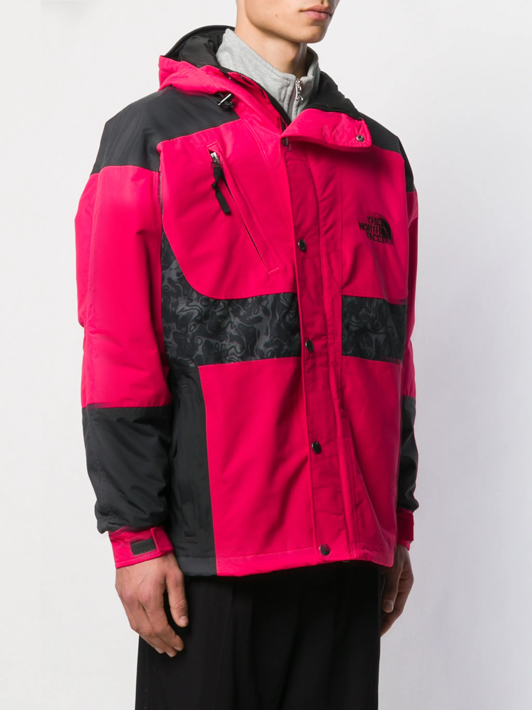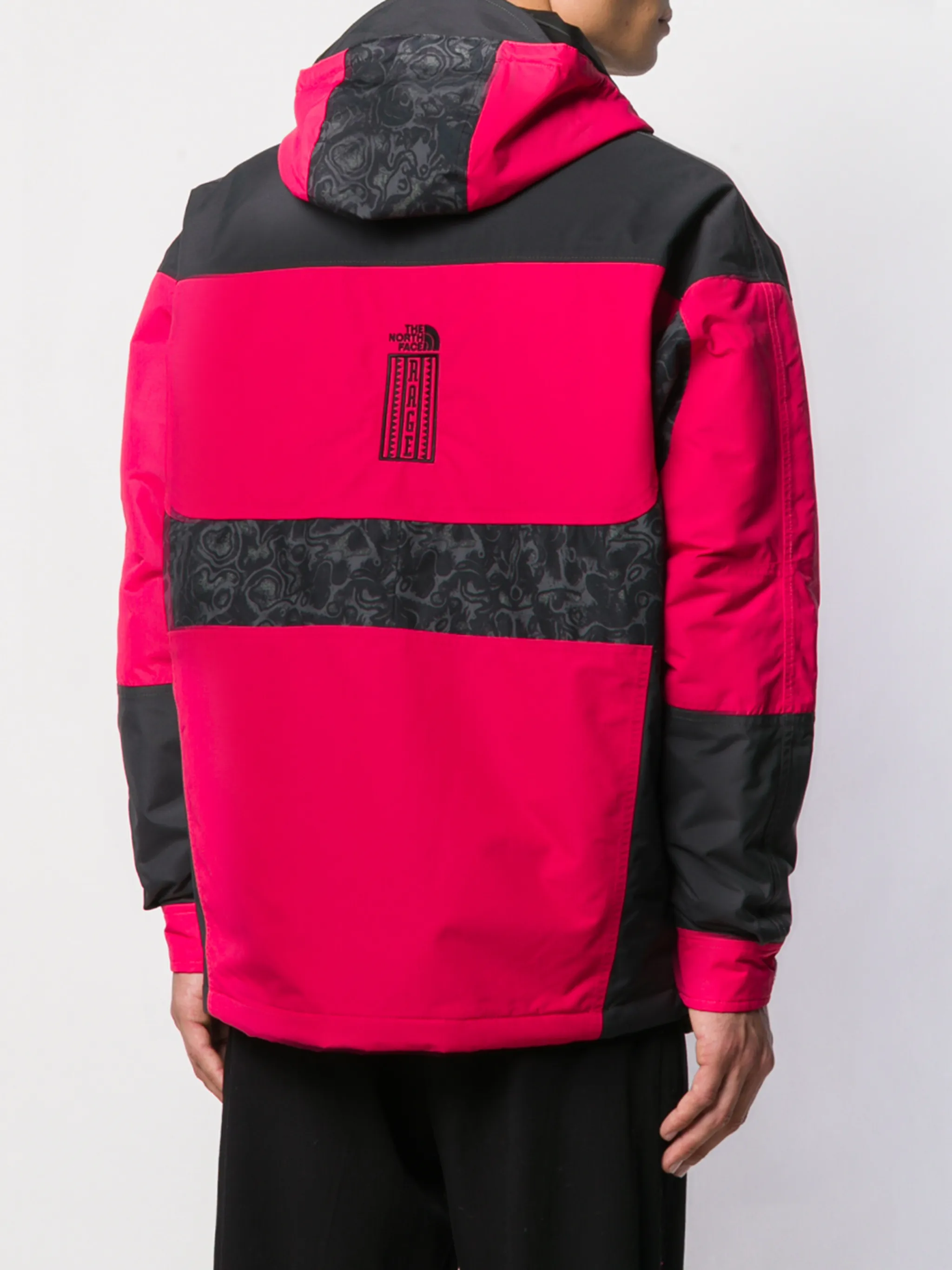 Куртка 94 Rage от The North Face. Логотип на груди, подол на шнурке, панели с принтами, потайная застежка на молнии, застежка на липучке и капюшон.