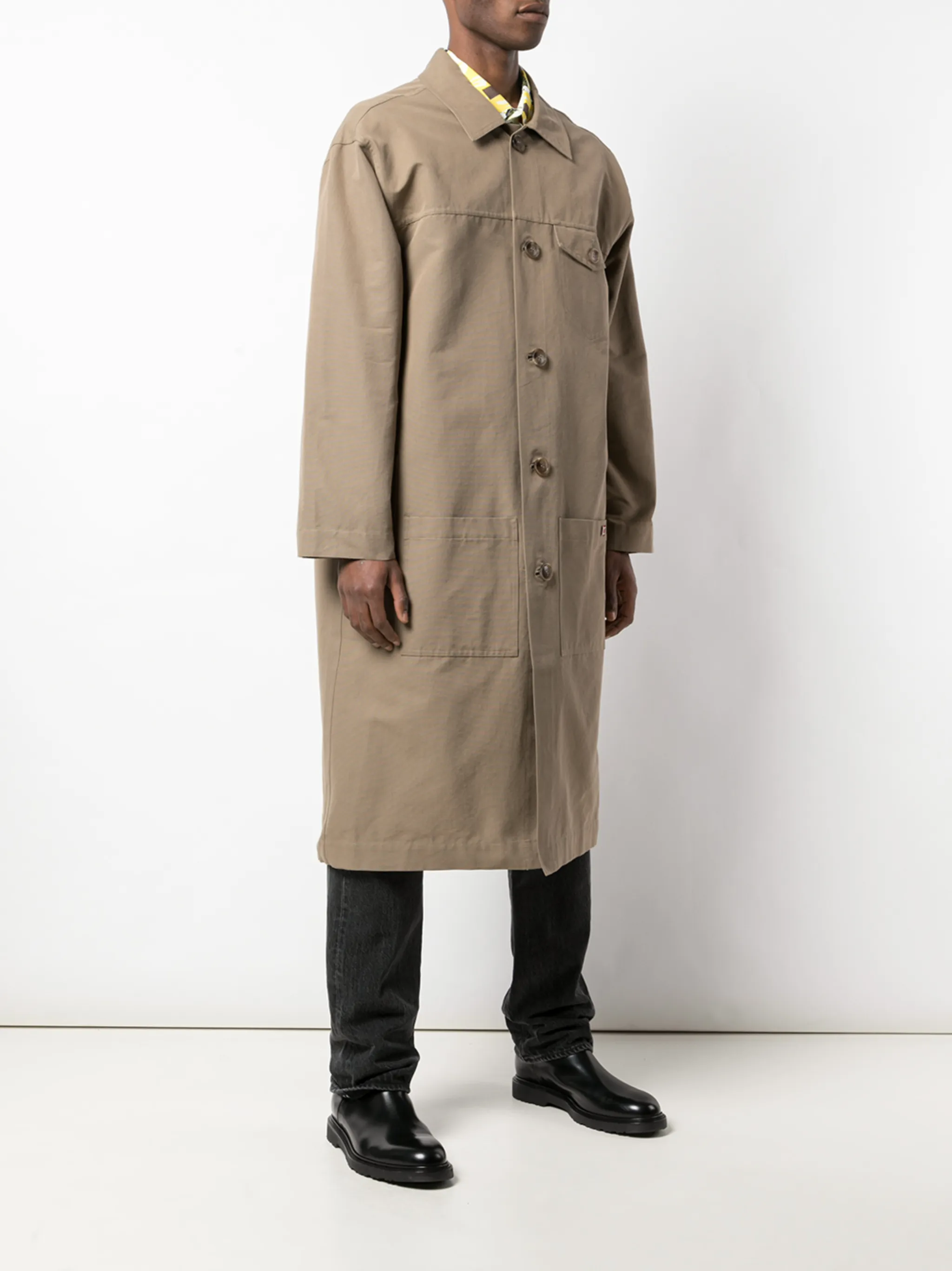 Куртка-дождевик с капюшоном от Martine Rose. Классический воротник, застежка на пуговицах спереди, нагрудный карман с клапаном, боковые карманы и прямой подол. Цвет: коричневый.