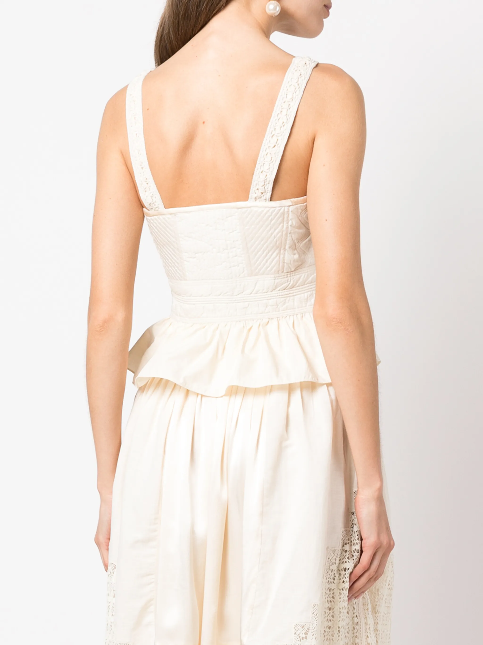 Оттенок слоновой кости, хлопок, шнуровка спереди, лиф в стиле бюстье, без рукавов и подол с баской.