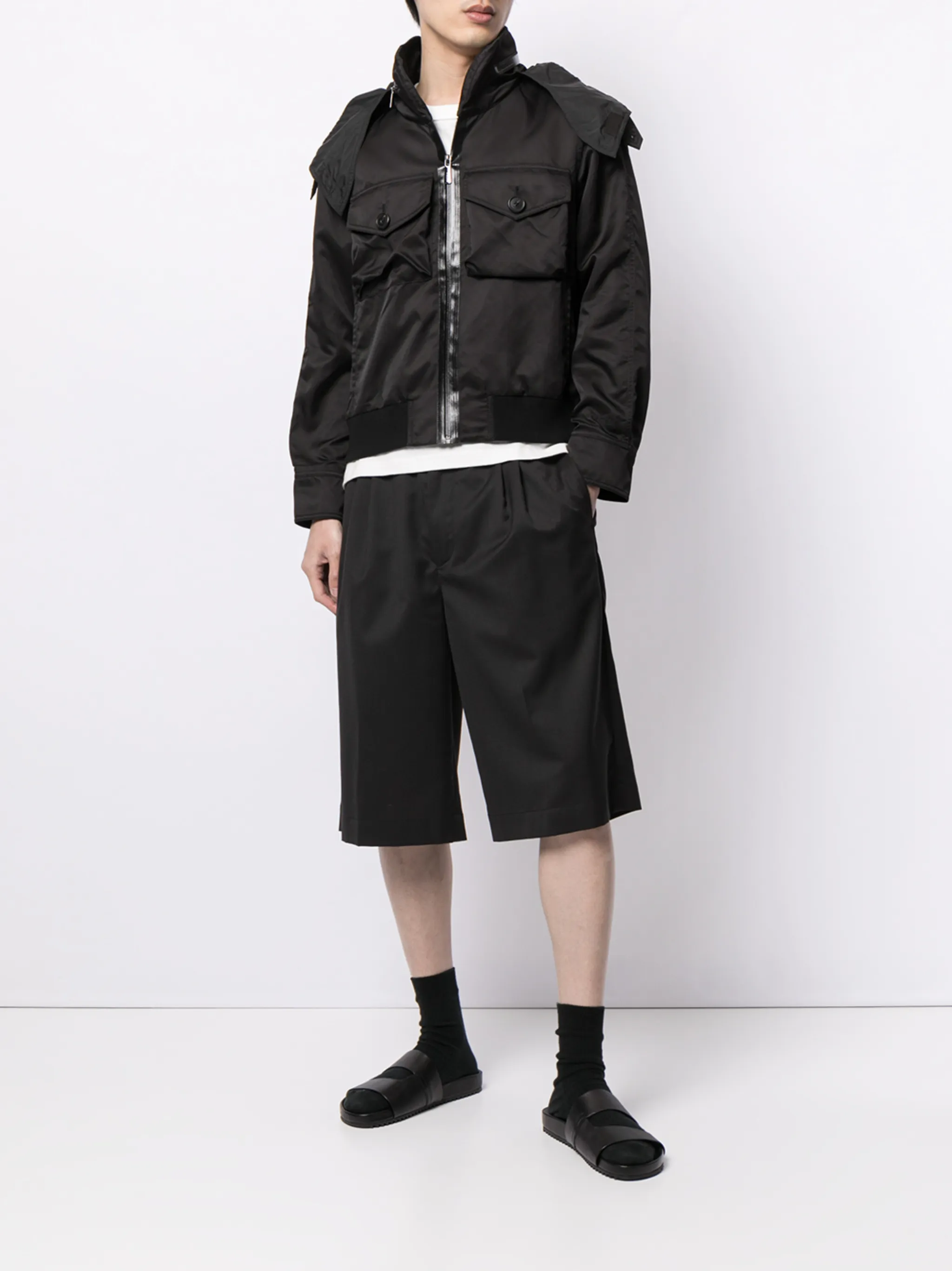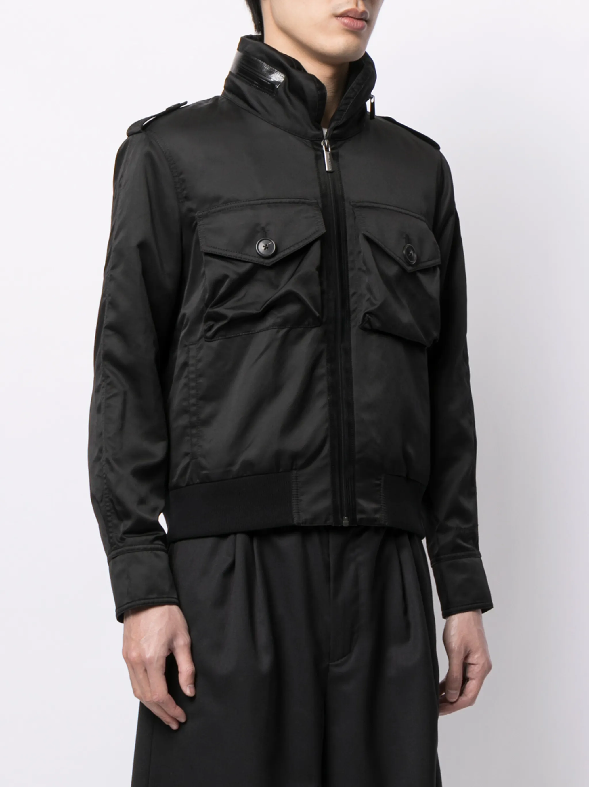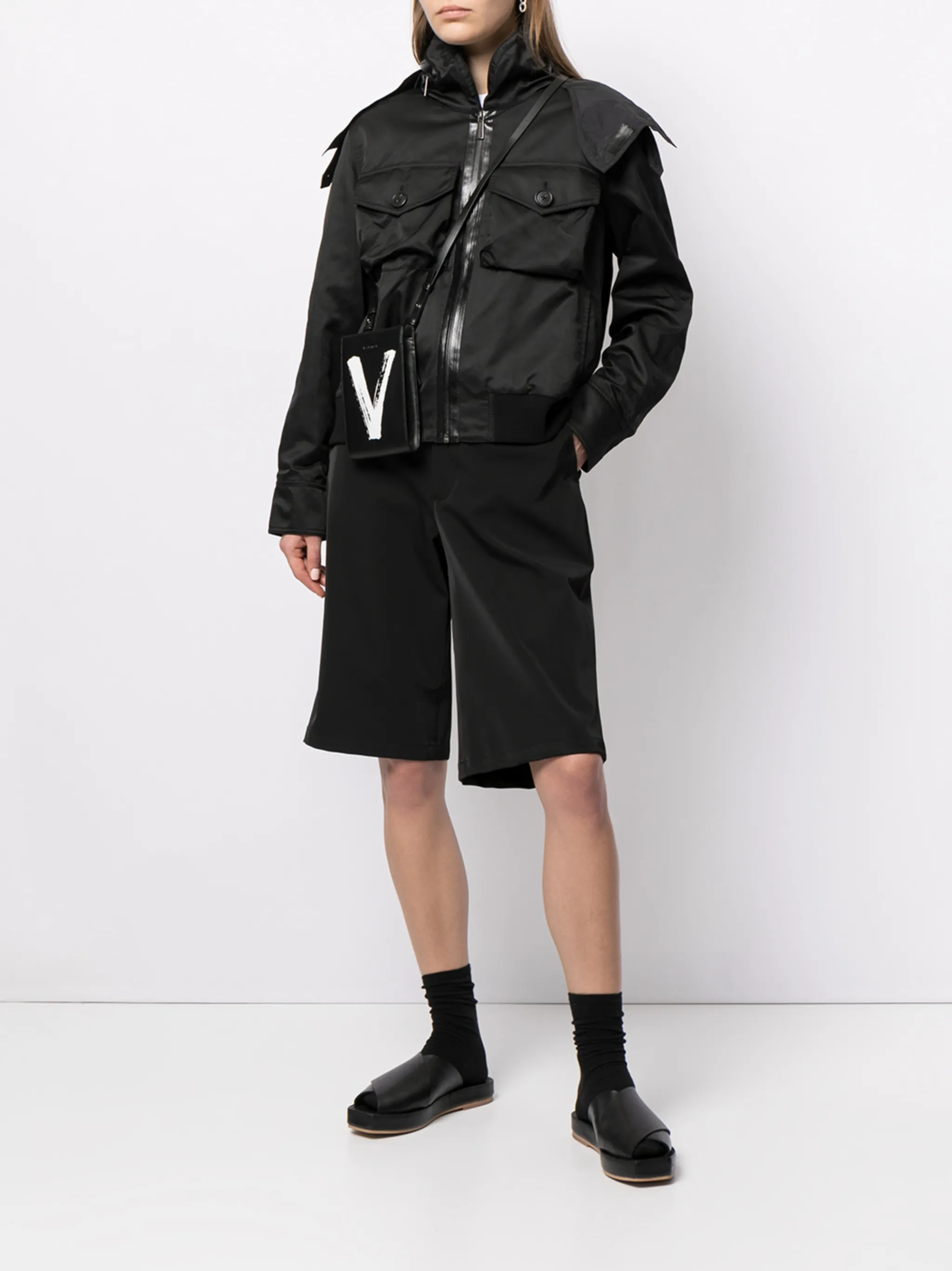 Контрастные вставки, два накладных кармана спереди, застежка на молнии спереди, длинные рукава и эластичный подол. Цвет: черный.