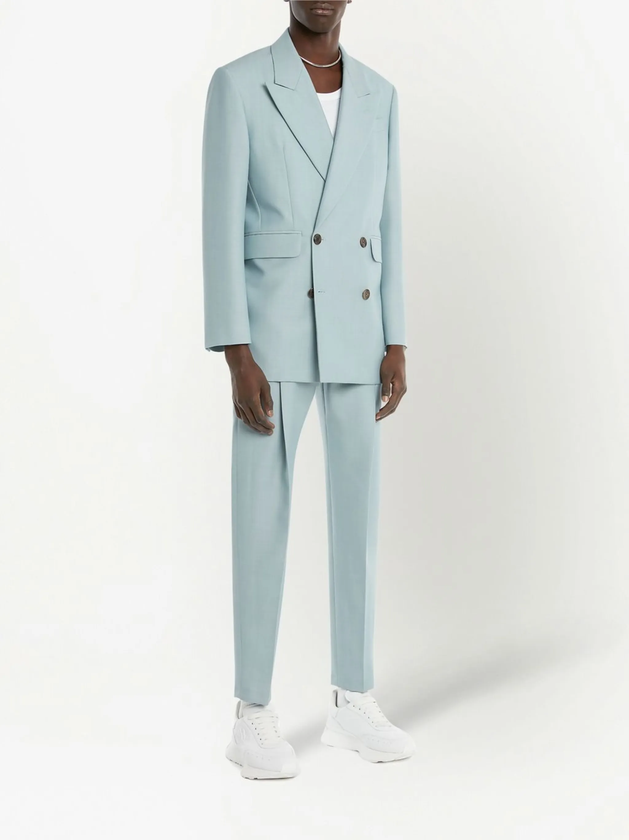 Двубортный пиджак строгого кроя Alexander Mcqueen, синий