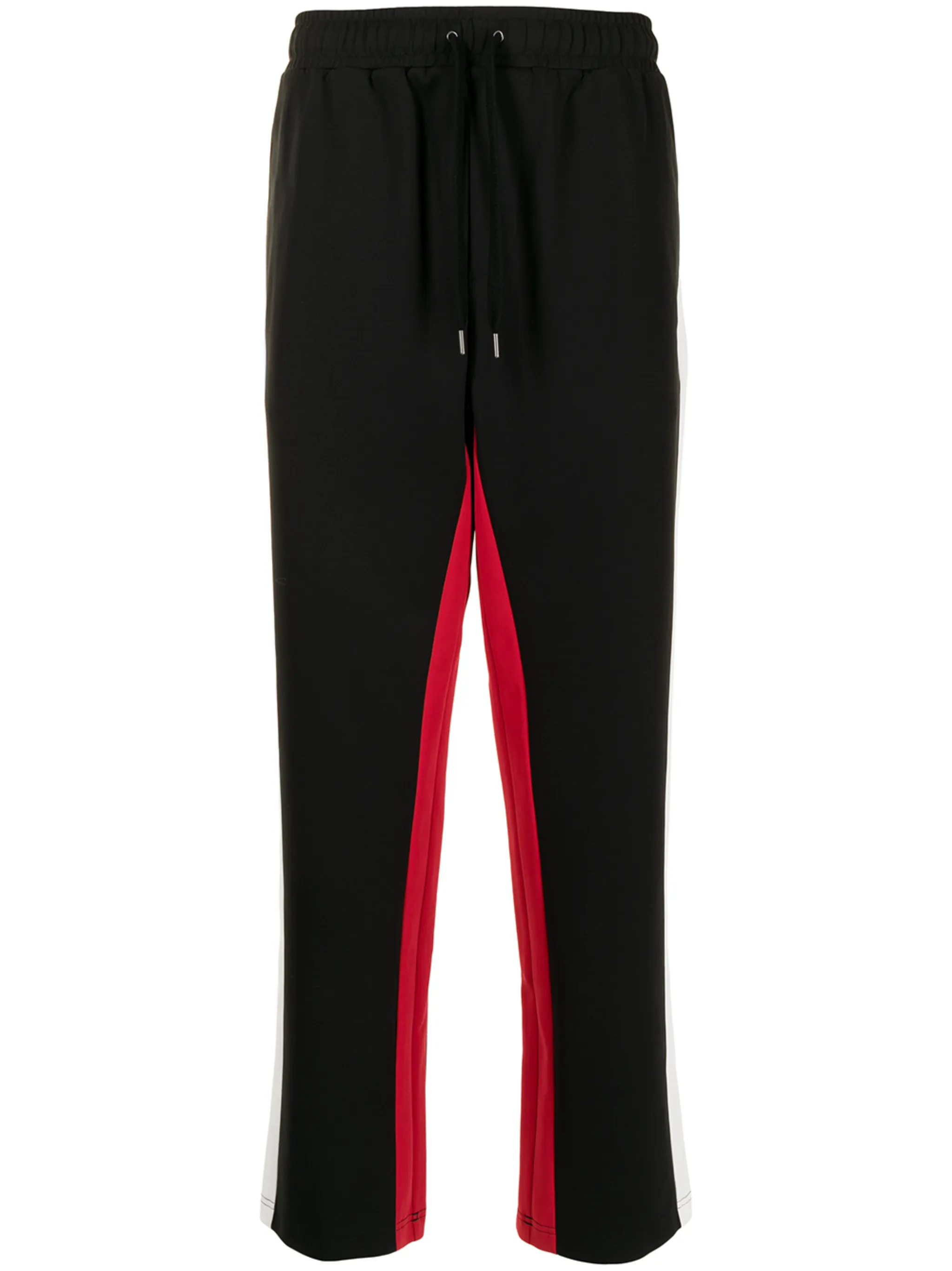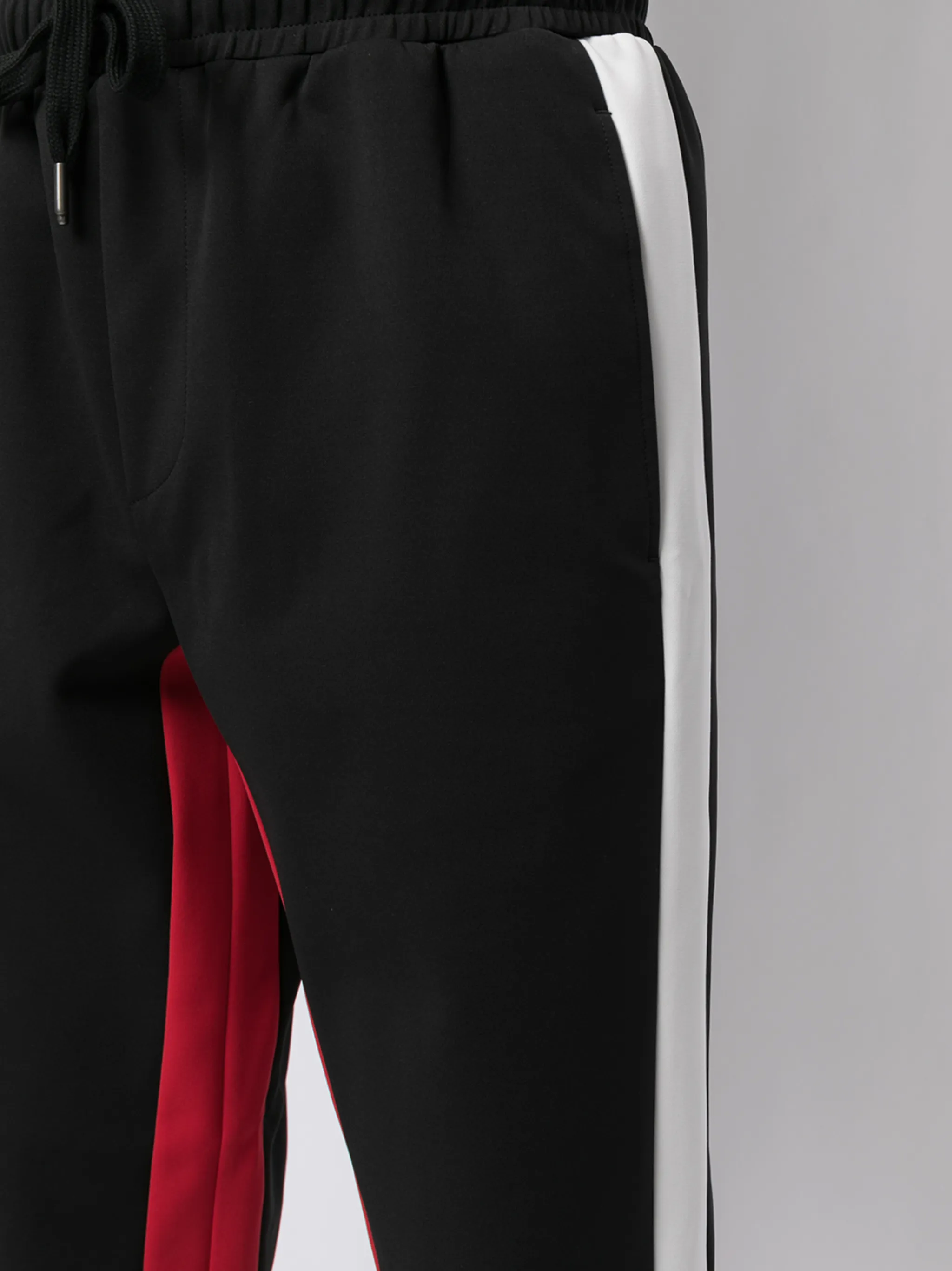 Полоска сбоку, два вшитых кармана по бокам, кулиска на талии и прямой крой. Цвет: черный.