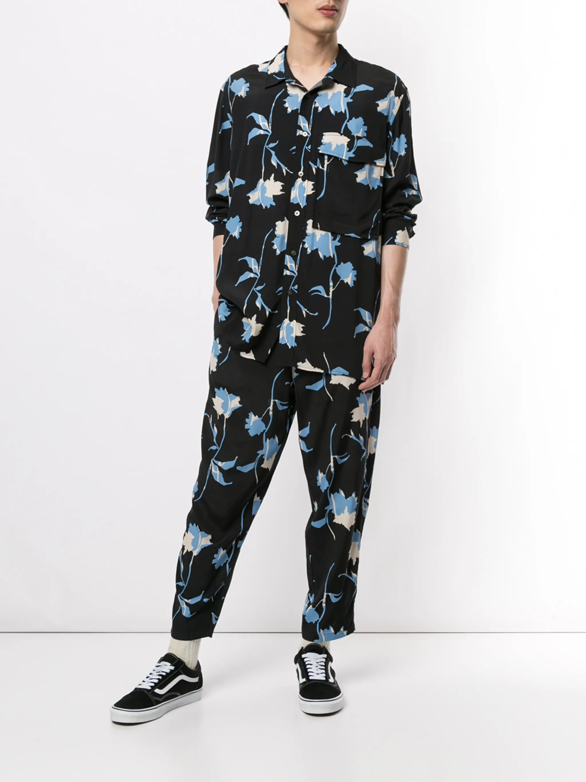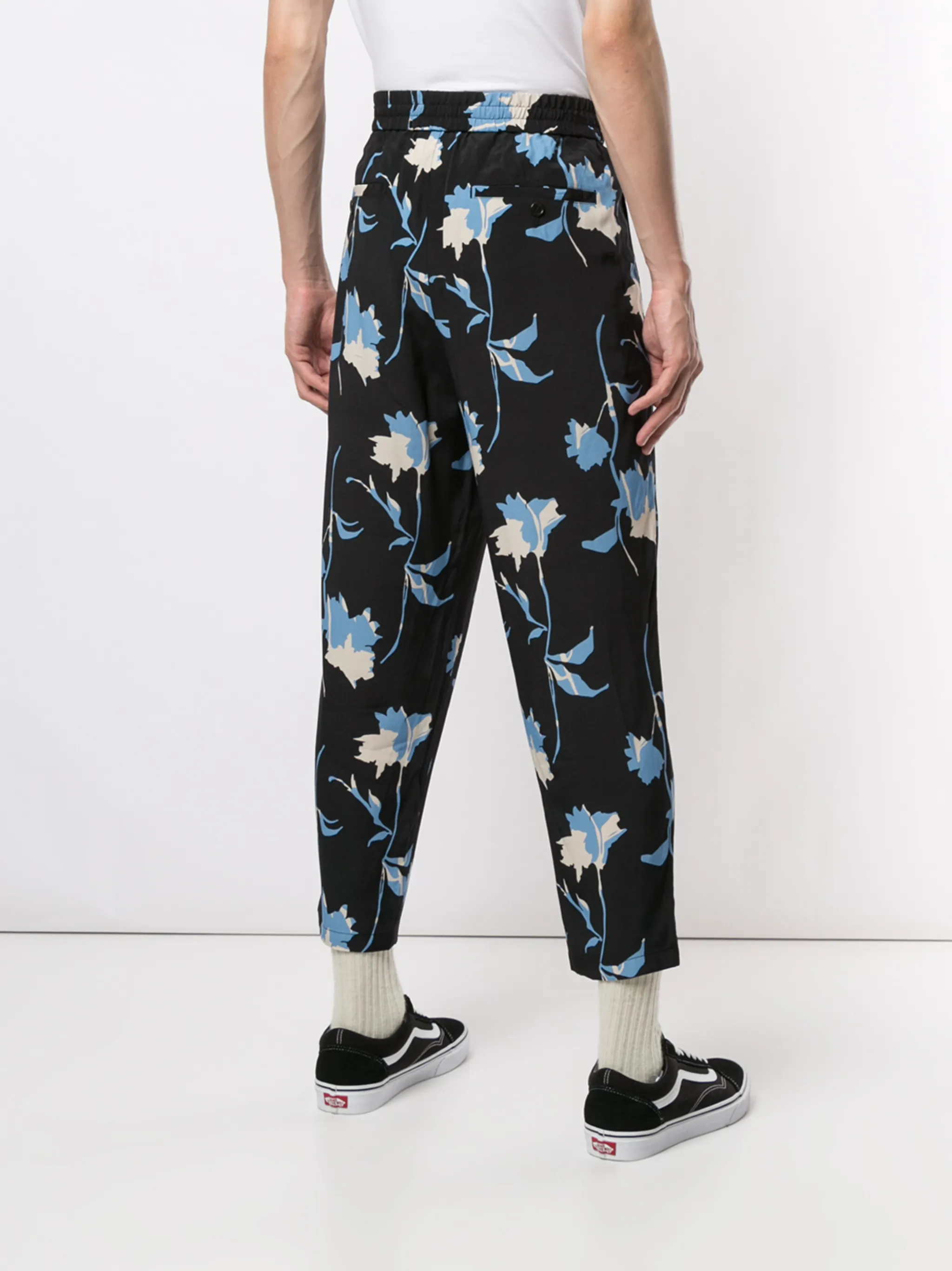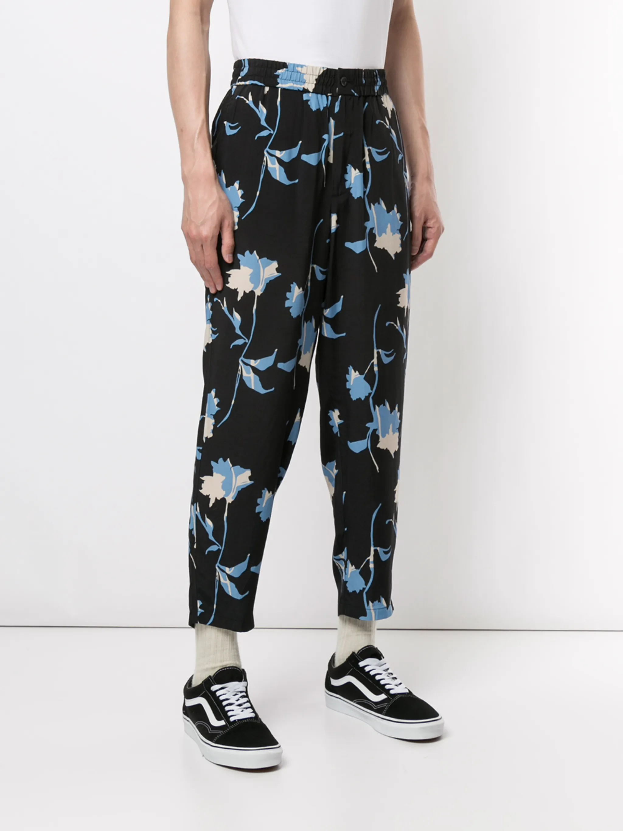 Укороченные брюки с цветочным принтом от Ports V. Пояс с петлями для ремня, ширинка на молнии с пуговицей, укороченная длина и цветочный принт. Цвет: синий.
