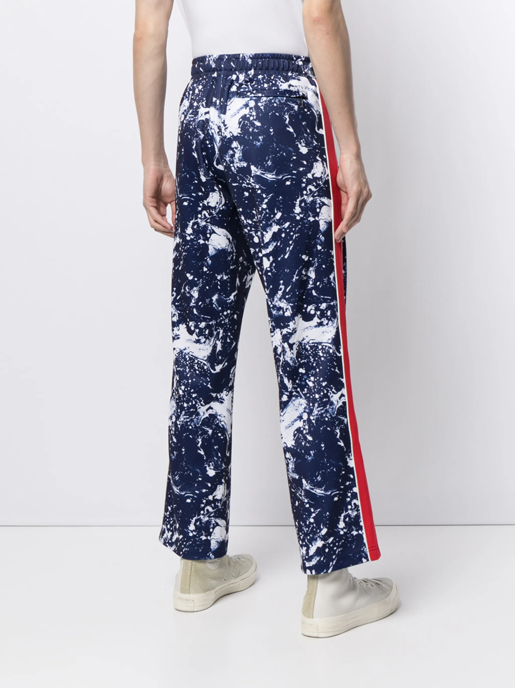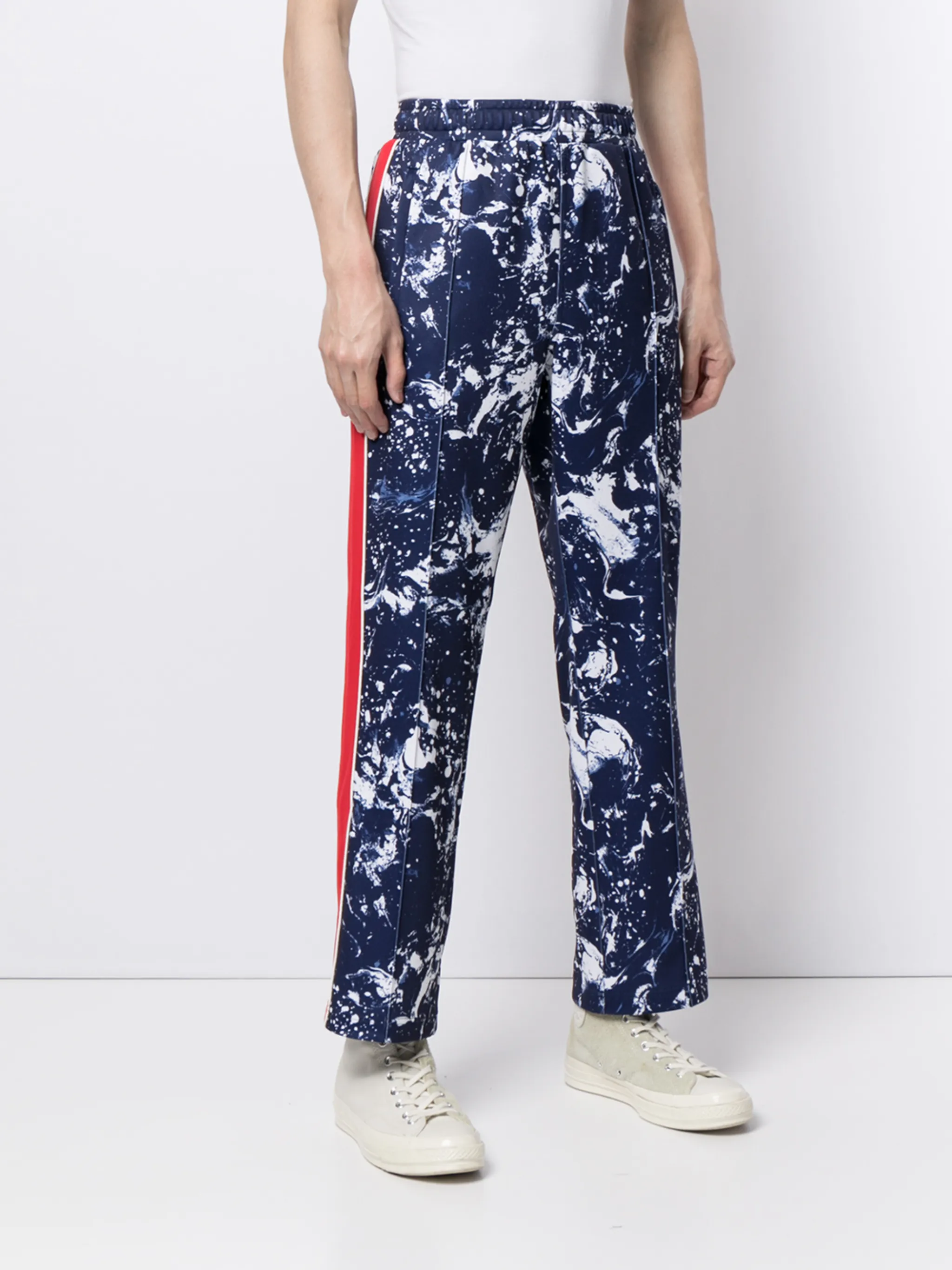 Абстрактный принт, полоска сбоку, эластичный пояс и два кармана по бокам.