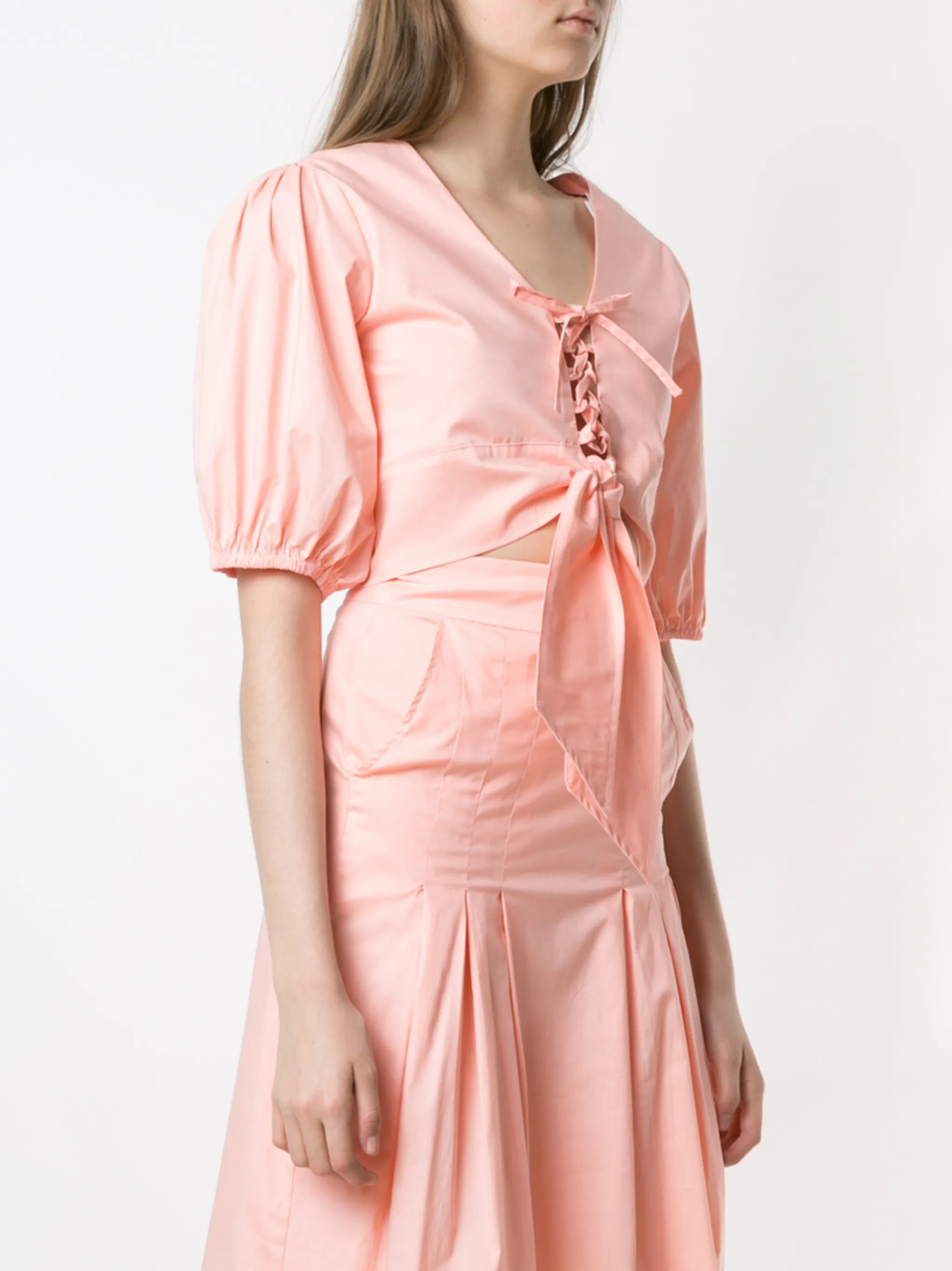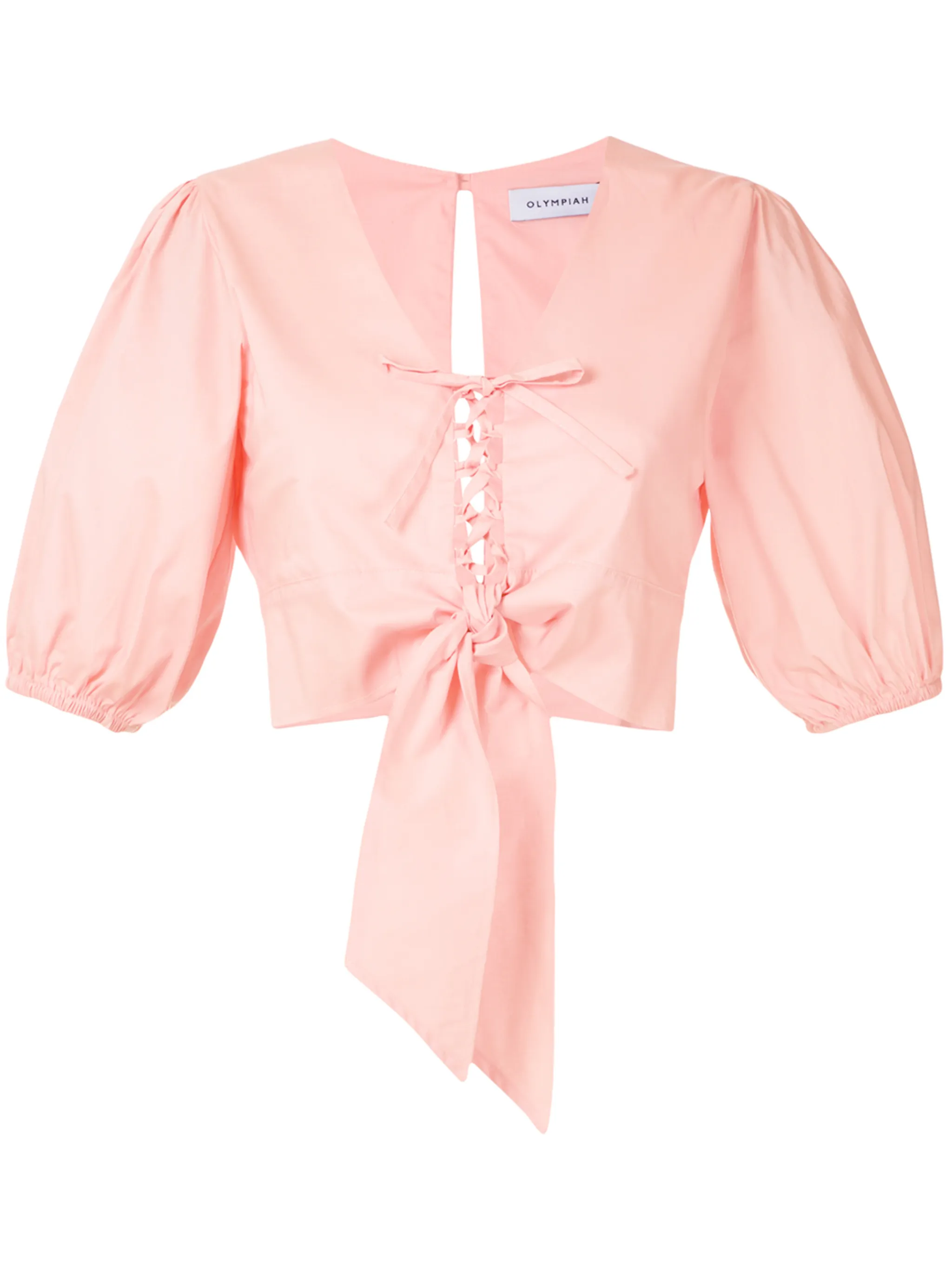 Укороченный топ Viorne от Olympiah. V-образная горловина, короткие широкие рукава, талия на завязке, короткая длина и узкий крой. Цвет: розовый.
