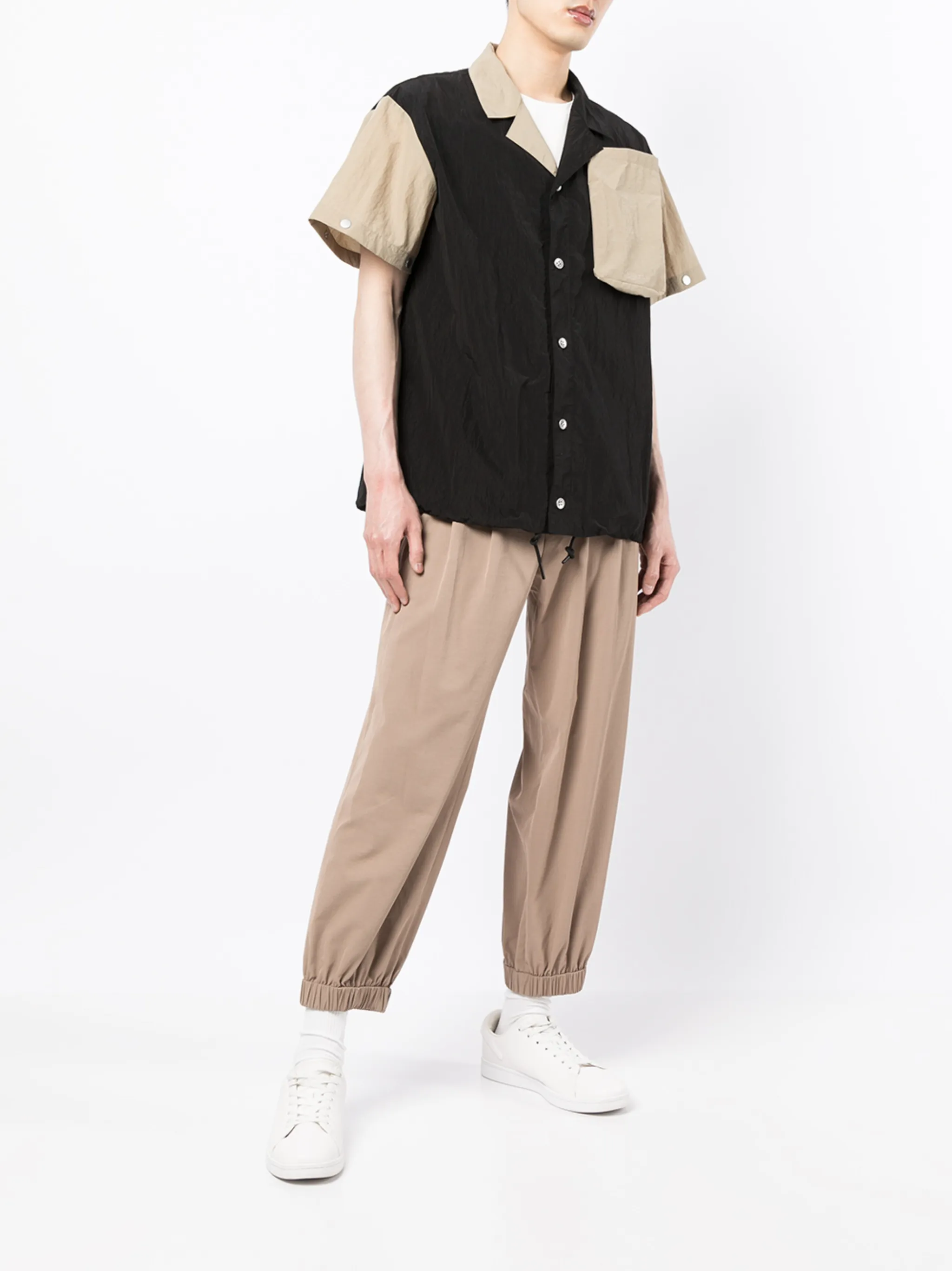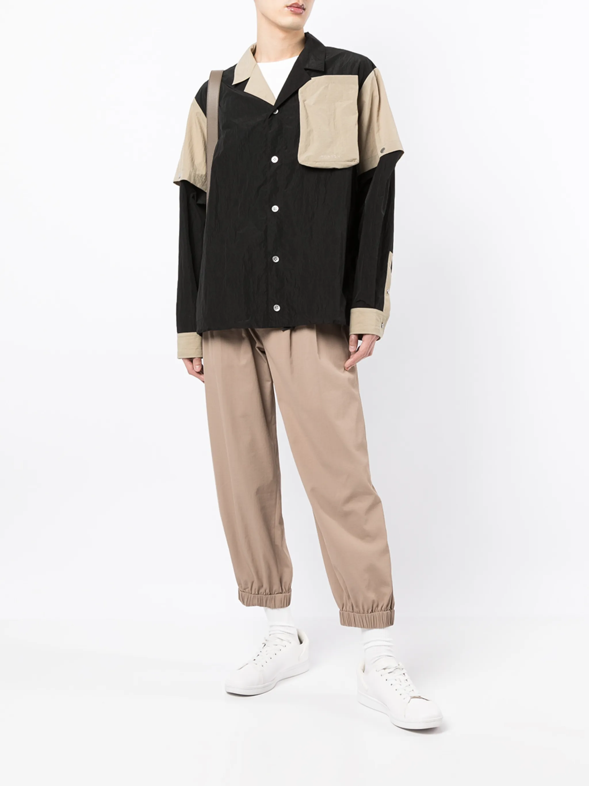 Съемные рукава, дизайн колор-блок, вышитый логотип на груди, зазубренный воротник, застежка на пуговицах спереди, длинные рукава, манжеты на пуговицах, прямой подол и два накладных кармана на груди.