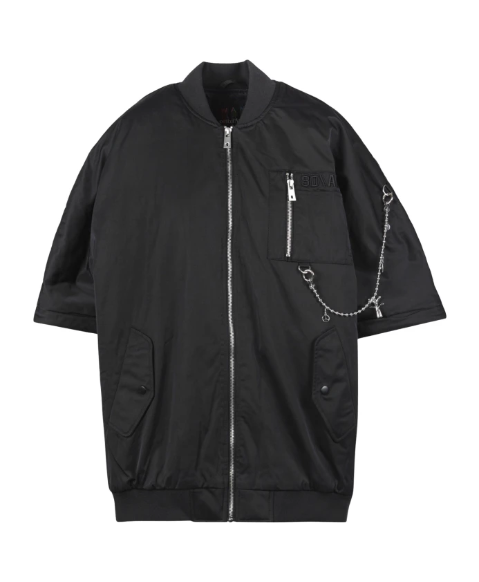Бомбер Ottod'Ame Cappa с наполнителем - это бомбер-накидка на подкладке, сочетающий в себе свободный силуэт и эффектную фурнитуру для оригинального и стильного образа. Съемная металлическая цепочка и практичные карманы делают его выдающимся элементом для создания многослойных повседневных образов. Ключевые особенности: Черный | Черный | Смесь полиэстера и хлопка | Застежка-молния спереди | Нагрудный карман на молнии с вышитым логотипом в тон | Съемная металлическая цепочка с подвесками | Два передних накладных кармана с застежками на кнопках | Эластичный трикотажный низ | Трикотажный воротник | Спущенные плечи | Короткие рукава | Трикотажный воротник и низ в рубчик | Силуэт бомбера | Размеры и посадка: Свободный крой | Модель носит размер S/M, рост 175 см | Состав и уход: Материал: 65% полиэстер, 35% хлопок | Подкладка: 100% полиамид | Наполнитель: 100% полиэстер