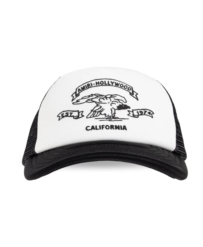 Бейсболка Amiri Core Logo Trucker Cap сочетает в себе белую переднюю часть с контрастной черной сеткой для воздухопроницаемости и фирменным вышитым рисунком. Изогнутый козырек и застежка-регулятор делают ее универсальным повседневным аксессуаром от Amiri. Ключевые особенности: Белый | Черный | Хлопок | Дышащие сетчатые вставки | Улучшенная вентиляция | Регулируемая застежка-регулятор | Один размер, регулируемый | Изогнутый козырек | Контрастная сетка сзади | Вышитый мотив орла и текст | Контрастная передняя часть | Размеры и посадка: Один размер | Регулируемая застежка-регулятор для индивидуальной подгонки | Состав материала и уход: 100% хлопок | Только точечная чистка. Не стирать. Не отбеливать. Не сушить в сушильной машине. Не гладить. Не подвергать химчистке.