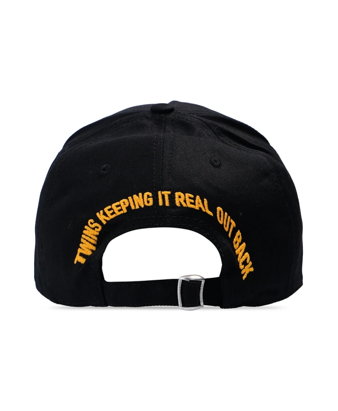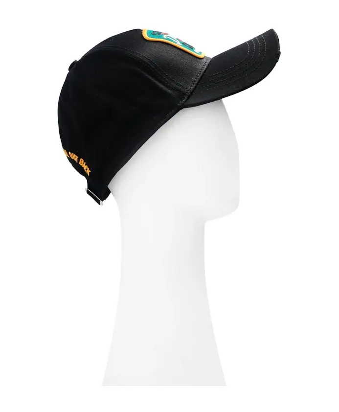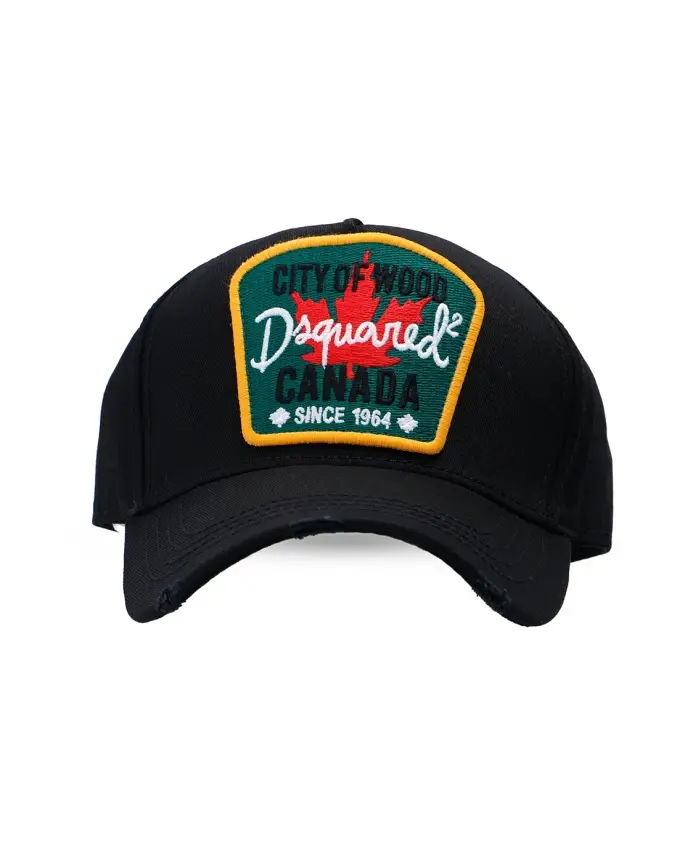 Черная бейсболка с эффектом потертости от Dsquared2. Изготовлена из хлопка, украшена нашивками с логотипом и имеет регулируемый ремешок сзади.