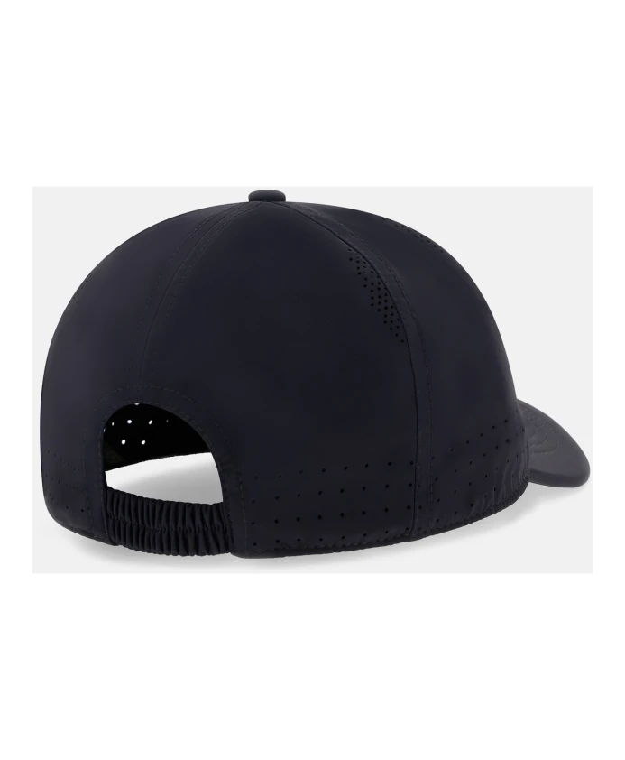 Бейсболка из перфорированной технической ткани из линейки B TECH с козырьком и прорезиненным принтом сбоку.