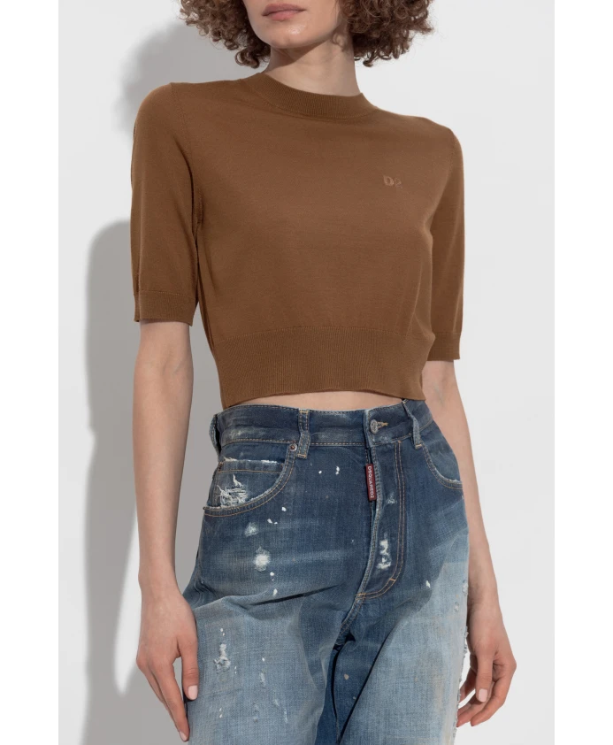 Шерстяная блузка с логотипом Dsquared2, коричневый