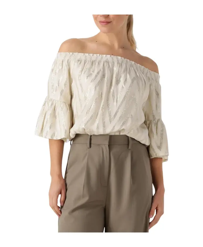 Блузка Bruuns Bazaar Carlis с открытыми плечами, созданная для теплой погоды, сочетает в себе легкую драпировку и едва заметный металлический блеск. Идеально подходит для создания расслабленных весенних и летних образов, легко сочетается с льняными брюками или сандалиями, создавая непринужденный, элегантный образ. Ключевые особенности: Бежевый | Экрю | Вискоза | Легкая ткань | Вырез горловины с открытыми плечами | Рукава три четверти | Нежный металлический блеск | Легкая, воздушная драпировка | Размеры и посадка: Свободный крой | Состав ткани и уход: 84% вискоза | 16% металлизированное волокно | Машинная стирка в холодной воде (30°C, деликатный режим). Гладить при низкой температуре (макс. 110°C). Не сушить в сушильной машине. Профессиональная химчистка. Не отбеливать.