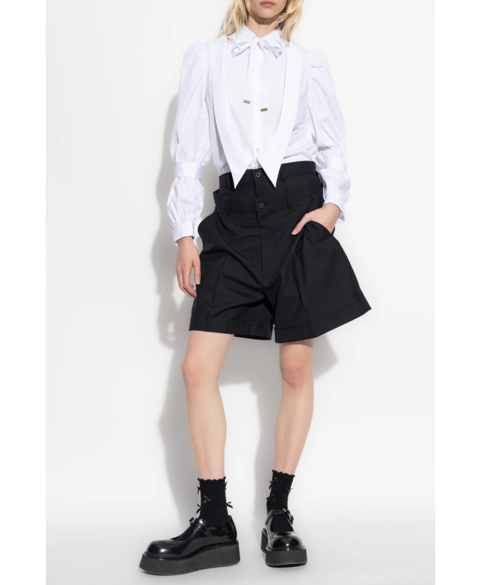 Представляем блузку с пышными рукавами от Comme des Garçons Noir Kei Ninomiya - идеальное сочетание классического стиля и современных деталей. Эта белая блузка, изготовленная из высококачественного хлопка, создает уникальный и элегантный образ. Ключевые особенности: Белый | Хлопок | Пышные рукава с манжетами на пуговицах | Декоративная завязка | Классический воротник-стойка | Частично скрытая планка с пуговицами под передней подкладкой | Незаметные пуговицы | Небольшая сборка под кокеткой на спине | Посадка и размер: Стандартный крой | Состав и уход: 100% хлопок | Машинная стирка в холодной воде, сушка в барабане при низкой температуре.