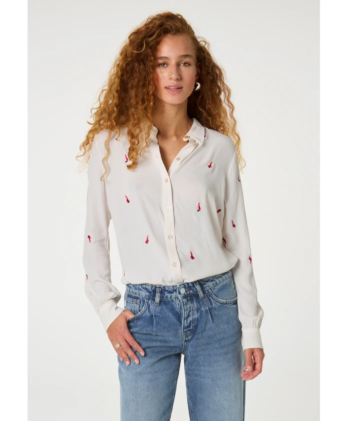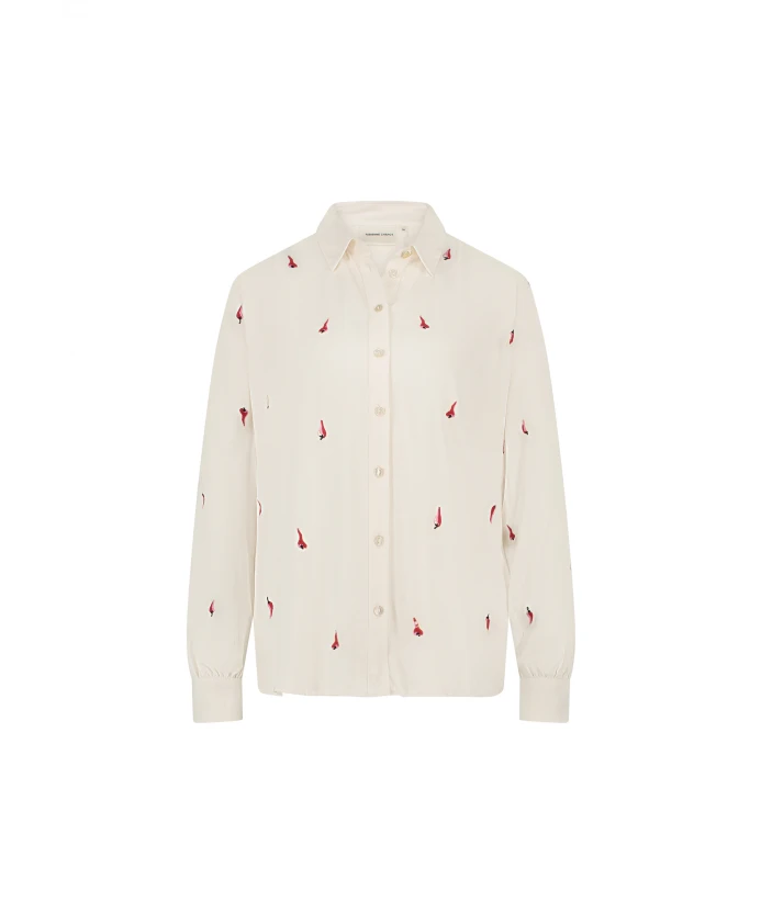 Откройте для себя блузку Lot Embro от Fabienne Chapot - классическую модель с очаровательной вышивкой в виде зеленых и красных перчиков чили, идеально подходящую для того, чтобы добавить игривости в ваш гардероб. Классический воротник и манжеты делают ее идеальным выбором для повседневной носки. Ключевые особенности: Кремово-белый | Бежевый | Вискоза | Классический воротник | Манжеты | Вышивка в виде перчиков чили | Размер: Классический крой | Состав и уход: 55% вискоза (Lenzing Ecovero) | 45% вискоза (FSC) | Машинная стирка в холодной воде, сушка в барабане при низкой температуре.