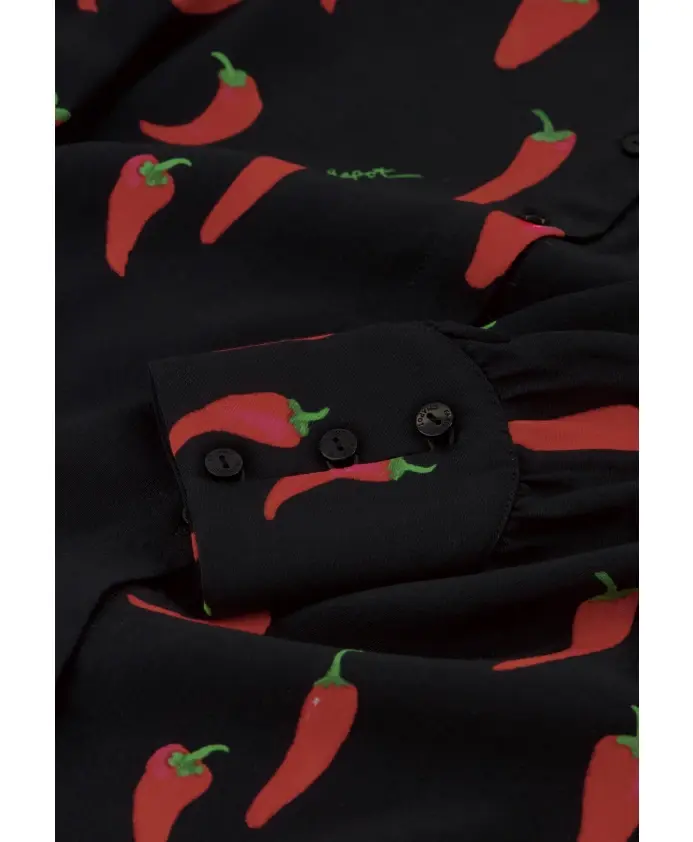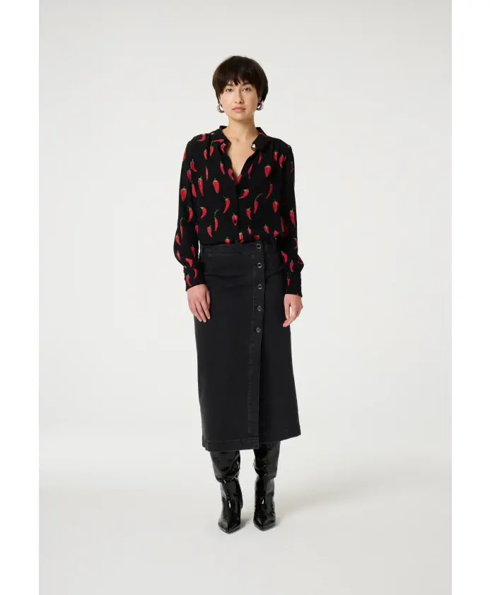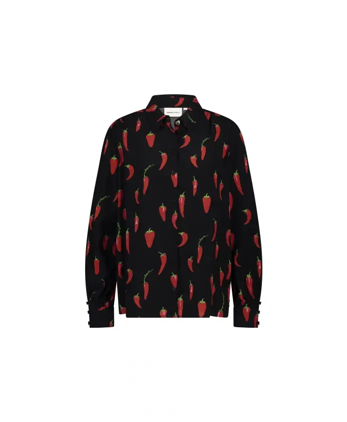 Блузка Coco от Fabienne Chapot - стильное дополнение к любому гардеробу, отличающееся классическим воротником и ярким принтом в виде красного перца чили. Изготовленная из мягкой вискозной смеси, эта блузка идеально подходит для многослойного образа с джинсовой юбкой верблюжьего цвета. Ключевые особенности: Черный | Красный острый перец чили | Вискоза | Классический воротник | Принт в виде красного перца чили по всей поверхности | Размер и посадка: Стандартный крой | Состав и уход: 100% вискоза | Машинная стирка в холодной воде, сушка в барабане при низкой температуре