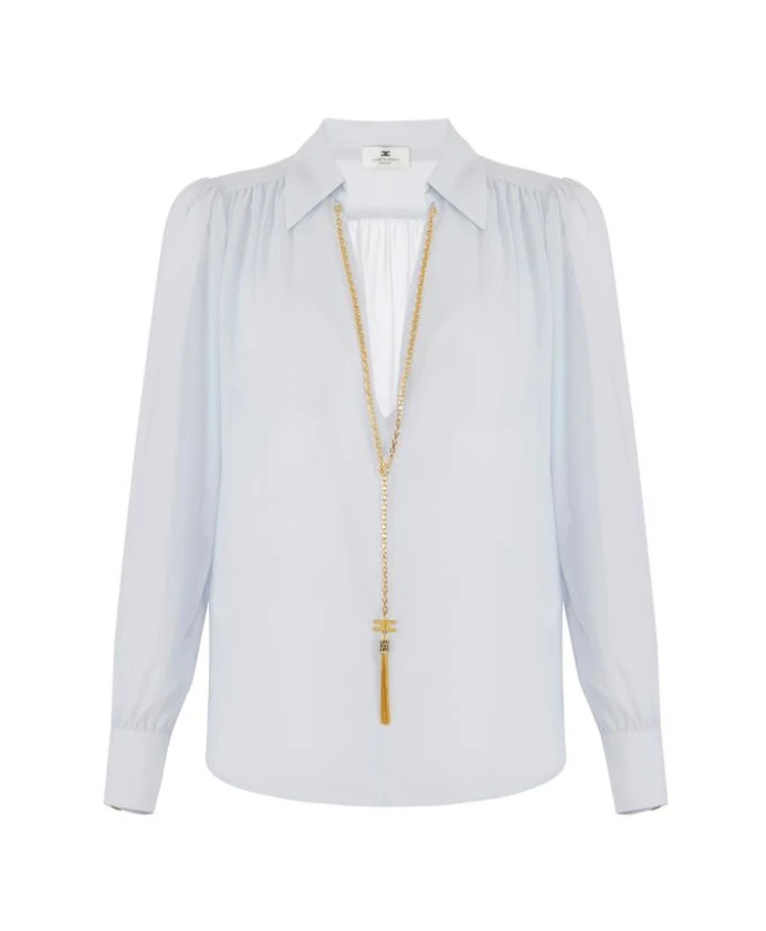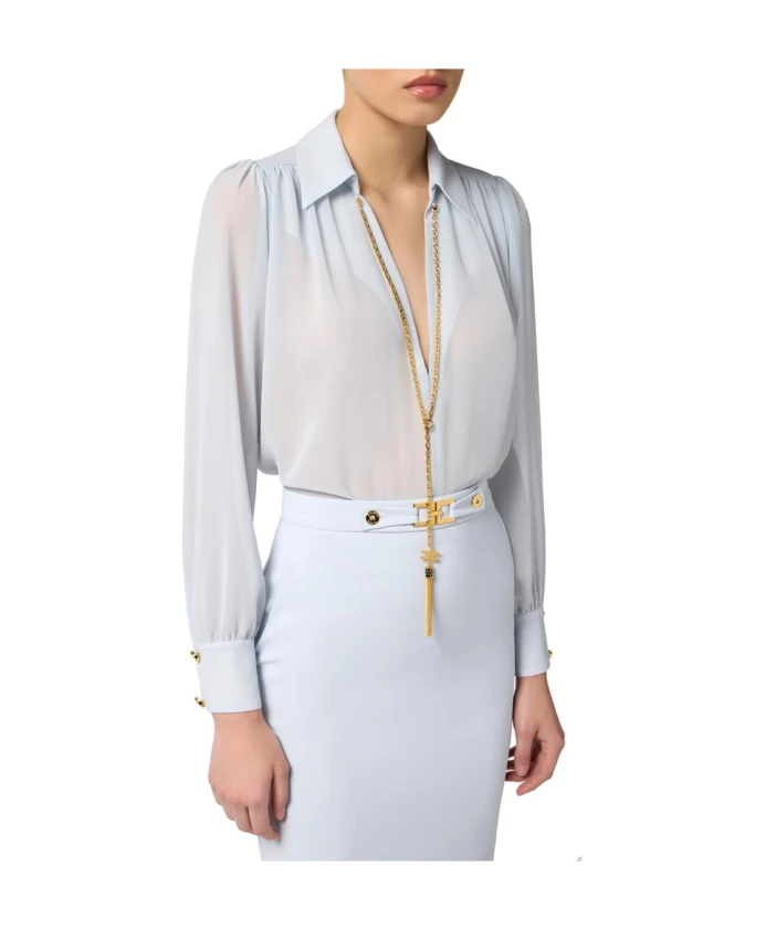 Блузка из жоржета с ожерельем Elisabetta Franchi, синий