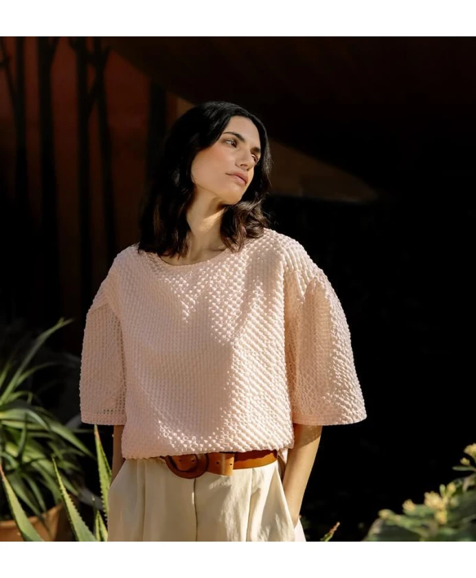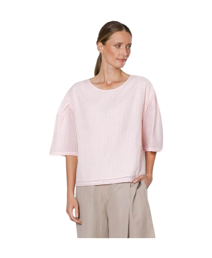 Объемная блузка с клетчатым узором из жатой ткани. Chie Mihara, розовый
