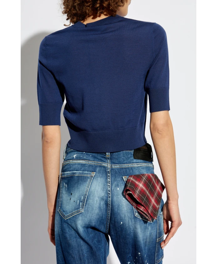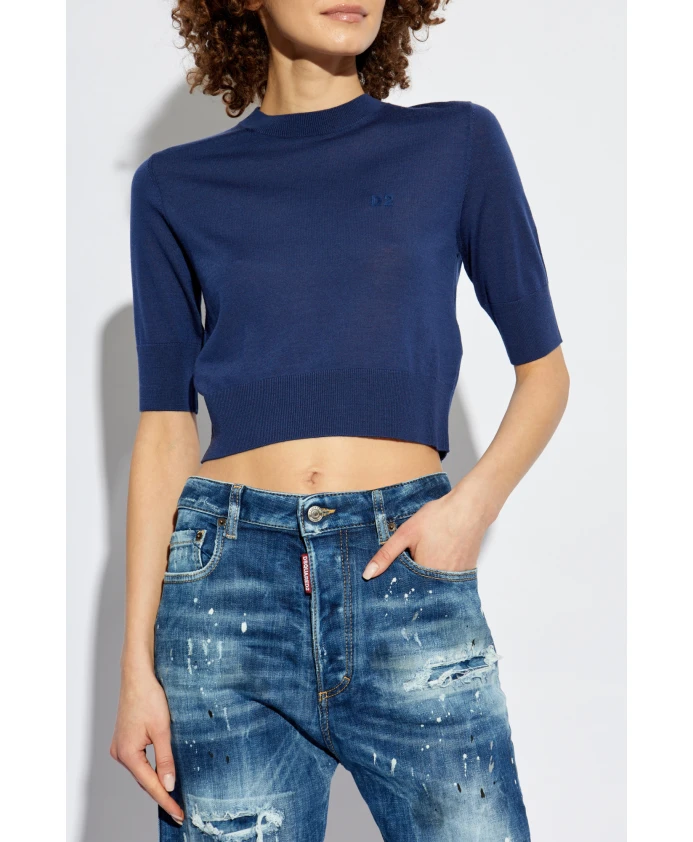 Шерстяная блузка с вышитым логотипом. Dsquared2, синий