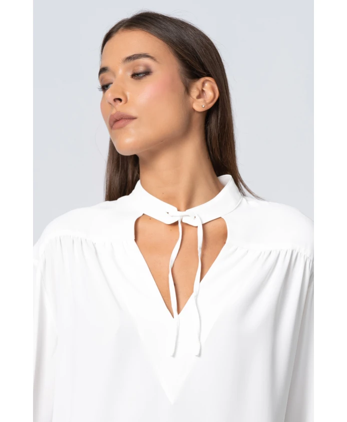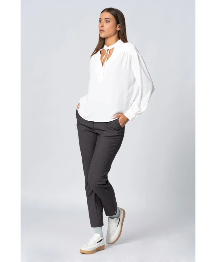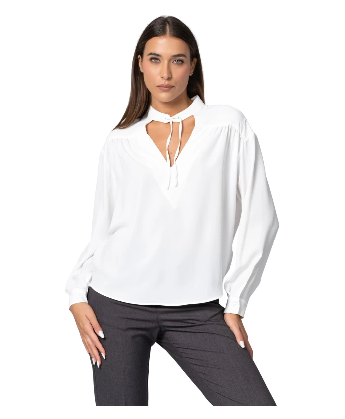 Блузка Kocca WORRYX сочетает в себе изящный галстук и тканевый узел с вырезом «сердечко», создавая элегантный и женственный образ. Легкая и универсальная, она подходит как для изысканных дневных нарядов, так и для вечерних мероприятий. Ключевые особенности: Белый | Bianco | Полиэстер | Застежка на галстук | Стандартные манжеты | Тонкий галстук | Вырез «сердечко» | Закругленный низ | Длинные рукава | Размеры и посадка: Рост модели 175 см, размер S/42 | Состав и уход: 100% полиэстер