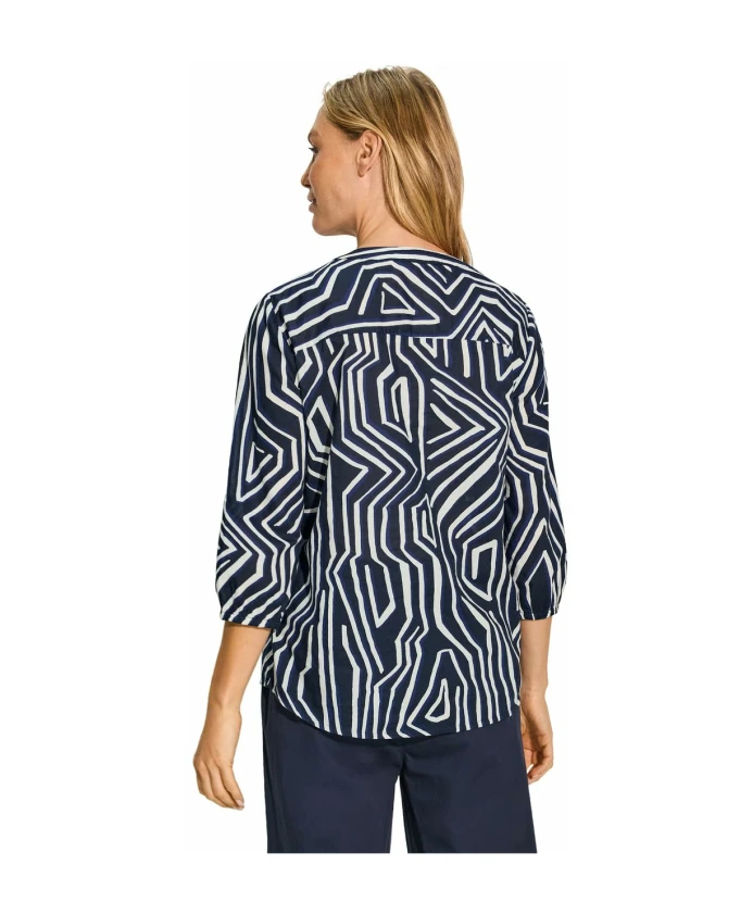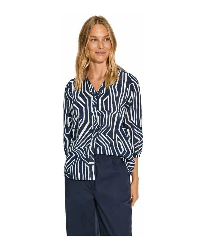 Легкая хлопковая блузка CECIL с узором идеально подходит для теплой погоды. Она сочетает в себе V-образный вырез с застежкой на пуговицы и рукава 3/4 с эластичными манжетами, создавая непринужденный, повседневный образ. Основные характеристики: Разноцветная | Синий | Хлопок | Легкая ткань | Дышащая | Застежка на пуговицы | Эластичные манжеты рукавов 3/4 | V-образный вырез | Графический узор | Рукава 3/4 | Эластичные манжеты | Состав и уход: 100% хлопок