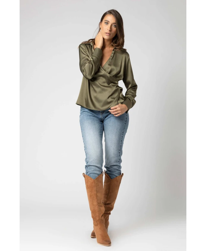 Блузка Kocca Soft Wrap имеет мягкий силуэт с запахом, идеально подходящий для делового повседневного стиля и офиса. Запах и аккуратная отделка делают ее универсальным элементом многослойного образа. Ключевые особенности: Зеленый | Цвет хаки | Запах | Глубокий V-образный вырез | Длинные рукава | Стандартные манжеты | Закругленный низ | Двойная строчка по краям | Размеры и посадка: Рост модели 175 см, размер S/42