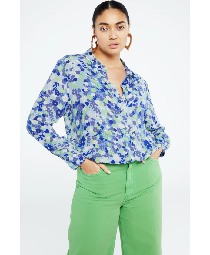 Блузка с голубыми яркими цветами Fabienne Chapot, синий