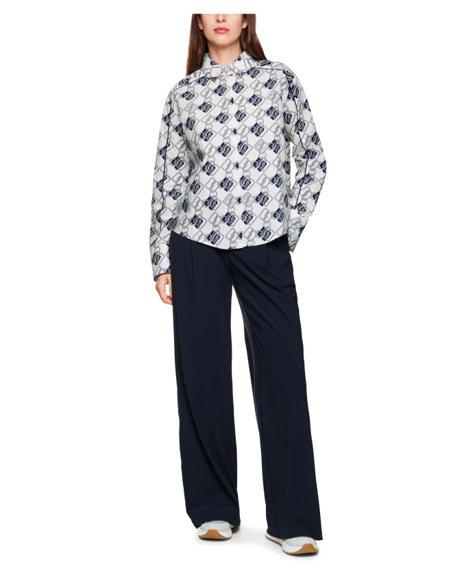 Обновите свой гардероб с помощью этой блузки с принтом от Marc Cain. Новая модель Cube с принтом по всей поверхности, изготовленная из 100% хлопка, придает этой блузке с воротником современный вид. Она имеет потайную застежку на пуговицах, изящную окантовку и широкие манжеты на одной пуговице для элегантного образа. Свободный крой с закругленным низом. Рост модели 179 см, размер N3/38.
