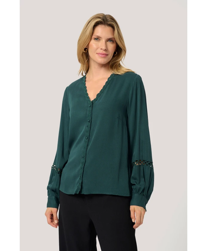 Блузка Crresi кремового цвета - это блузка из вискозы с длинными рукавами, V-образным вырезом и изящной вышивкой, подходящая как для повседневной носки, так и для более элегантных случаев. Ключевые особенности: Зеленый | Сосна Пондероза | Кремовый | Вискоза | V-образный вырез | Длинные рукава | Вышивка | Размер и посадка: Стандартный крой | Состав и уход: 100% вискоза