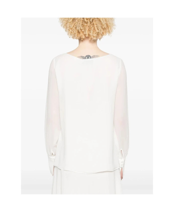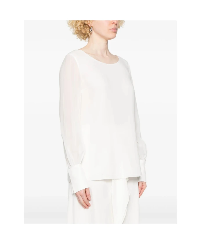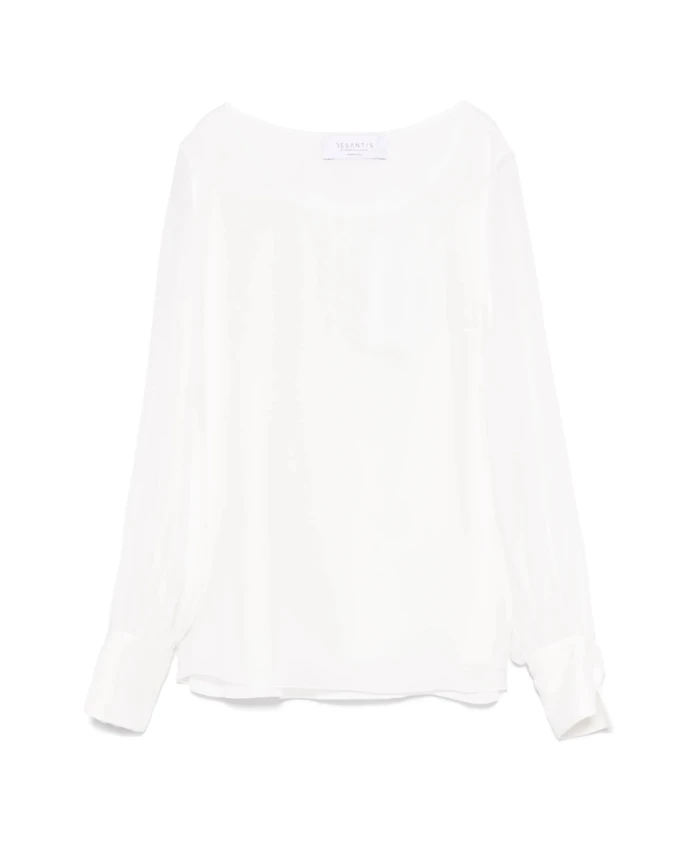 Блузка De Santis BL 210 - это шелковая блузка, отличающаяся широким вырезом-лодочкой и слегка присборенными длинными рукавами, которая станет элегантным дополнением любого гардероба, от дневного до вечернего. Основные характеристики: Белый | Шелк | Манжеты на пуговицах | Вырез-лодочка | Длинные рукава-фонарики | Состав и уход: Жоржетт, 100% шелк