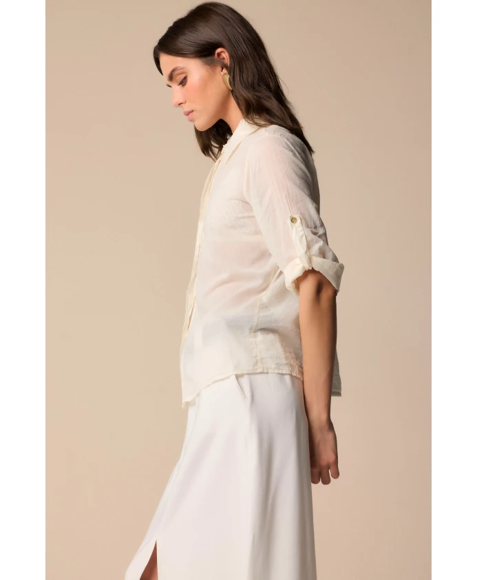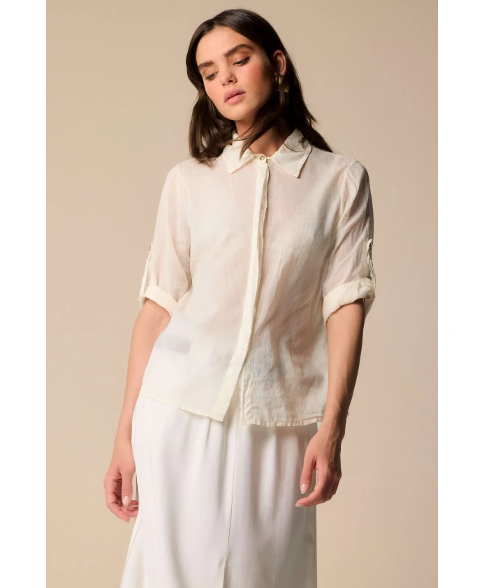 Роскошная блузка Kocca молочного кремового цвета с потайными пуговицами и рукавами, которые можно подвернуть, придаст элегантности и идеально подходит для создания разнообразных образов. Ключевые особенности: Белый | Не указано | Потайные пуговицы | Рукава, которые можно подвернуть | Простой воротник |