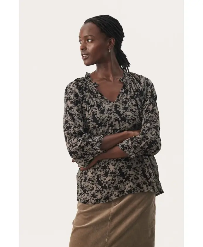 Блузка Part Two ElsiaPW станет элегантным дополнением вашего гардероба. Изысканный цветочный узор идеально подойдет как для работы, так и для повседневных выходов. Ключевые особенности: Черный | Разноцветный | Разноцветный | V-образный вырез | Рукава три четверти | Манжеты с оборками