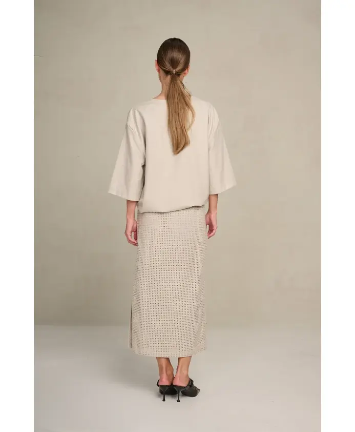 Блузка Gigi - это свободная блузка, созданная для того, чтобы ее легко сочетать с юбкой Chiari или брюками Edith, сшитыми из той же ткани. Идеально подходит как для повседневной носки, так и для особых случаев, она обеспечивает комфорт и элегантный вид.