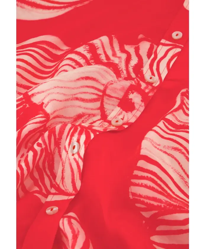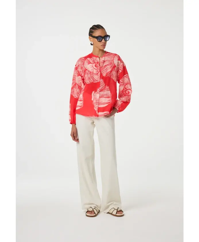 Эта красная блузка с нежным принтом в виде ракушек впечатляет своим свободным кроем и комфортным сочетанием вискозы и органического хлопка. Длинные рукава-фонарики подчеркивают непринужденный образ и делают эту блузку идеальным вариантом на каждый день.