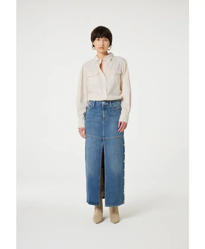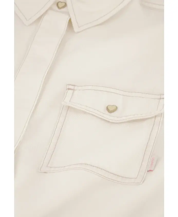 Эта белая джинсовая блузка для женщин имеет классический воротник, длинные рукава и пуговицы в форме сердечек. Эта нестареющая вещь легко сочетается с любым нарядом. Для создания стильного образа наденьте ее с нашей джинсовой юбкой Maya.