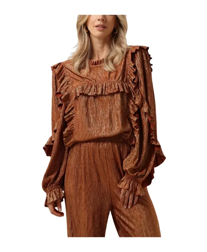 Блузка Studio Amaya Katie золотистого цвета от Studio Amaya - это универсальный предмет гардероба, подходящий как для дневных, так и для вечерних образов. Основные характеристики: Коричневый | Золотистый | Размер и посадка: Большемерит