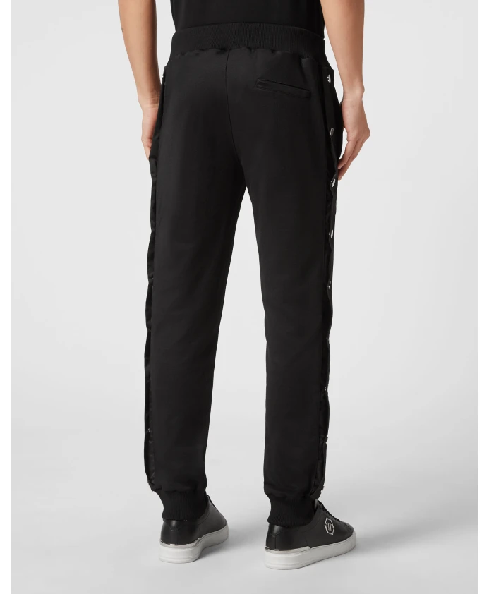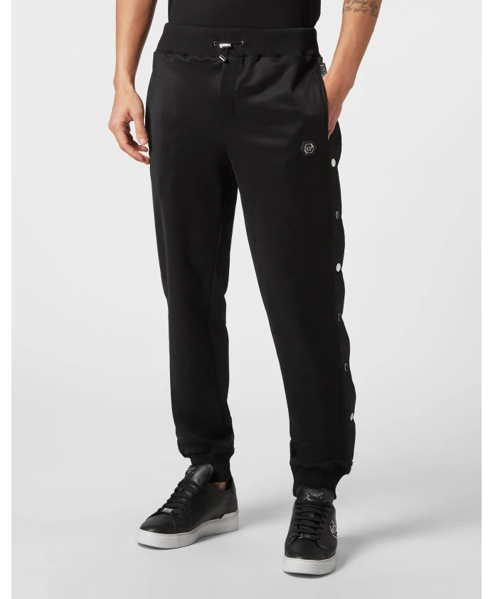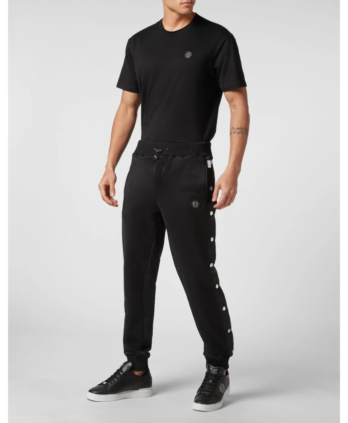 Спортивные брюки Philipp Plein Basic Jogging Pants - из флиса Techno triacetate, сочетающие спортивный комфорт с эффектными деталями. Они имеют боковые разрезы на штанинах с пуговицами и шестиугольную нашивку из сафьяновой кожи PP для создания изысканного спортивного образа. Ключевые особенности: Черный | Флис Triacetate | Флис Techno | Боковые пуговицы с нейлоновыми ремешками | Боковые карманы | Ребристый пояс со шнурком | Ребристые манжеты по низу | Шестиугольная нашивка PP из сафьяновой кожи с левой стороны | Боковые пуговицы вдоль штанин | Ребристый пояс и манжеты по низу | Состав и уход: Флис Triacetate | Нашивка из сафьяновой кожи