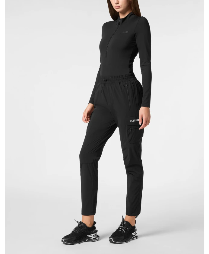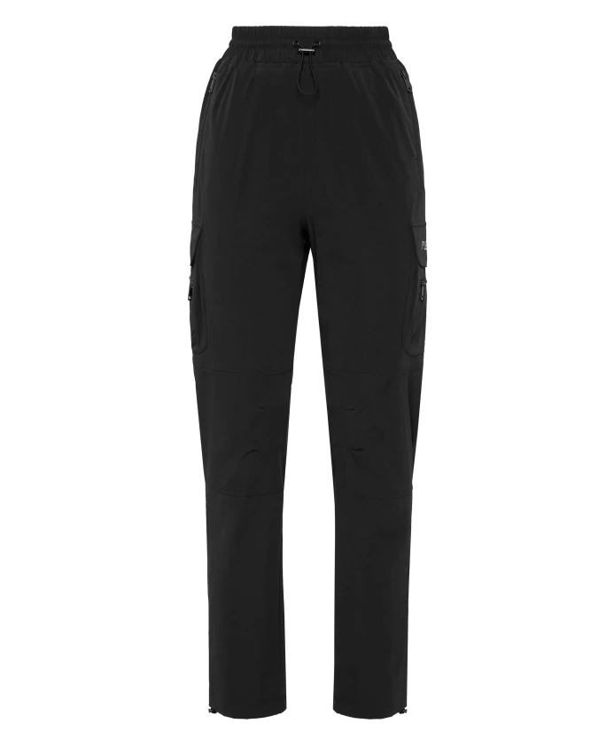 Спортивные брюки Plein Sport сочетают в себе эластичность и практичность для тренировок и повседневной носки. Эти брюки обеспечивают баланс между комфортом и функциональностью благодаря множеству карманов и регулируемому низу. Ключевые особенности: Черный | Нейлон | Эластичная ткань | Эластичный пояс со шнурком | Два боковых кармана на молнии | Два накладных кармана с клапанами по бокам штанин | Шнурки на штанинах с ограничителями | Силуэт спортивных брюк | Накладные карманы с клапанами | Детали карманов на молнии | Состав материала и уход: 83% нейлон, 17% эластан