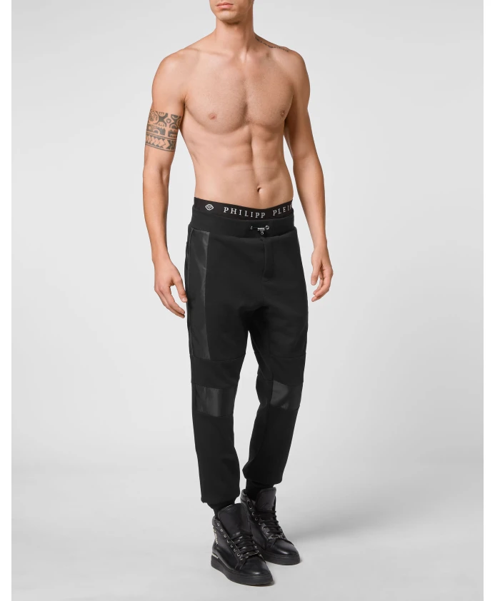 Спортивные брюки Philipp Plein из триацетата с вставками из нейлона и хлопкового флиса. Отличительные детали включают шестиугольную нашивку из сафьяновой кожи на переднем левом кармане и практичные боковые карманы для повседневного использования. Ключевые особенности: Черный | Триацетат | Пояс на шнурке | Два передних кармана | Ребристые манжеты | Шестиугольная нашивка из сафьяновой кожи на переднем левом кармане | Вставки из нейлона и хлопкового флиса | Ребристый пояс | Состав и уход: Триацетат | Нейлон | Хлопковый флис | Сафьяновая кожа