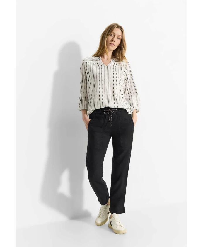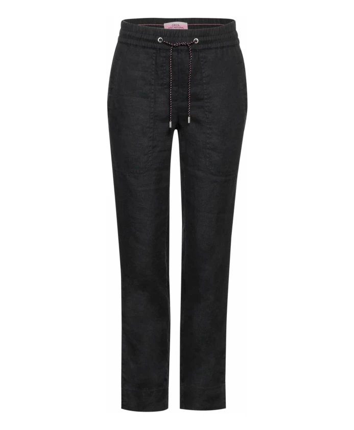 Брюки-джоггеры CECIL Tracey - это легкие брюки из льна с силуэтом джоггеров, созданные для комфортной повседневной носки. Эластичный пояс со шнурком обеспечивает легкую регулировку и создает расслабленный, элегантный образ. Ключевые особенности: Черный | Лен | Легкая ткань | Эластичный пояс со шнурком | Боковые карманы | Широкие штанины | Минимум деталей швов | Размеры и посадка: Свободный крой | Средняя посадка | Узкие штанины | Стиль джоггеров
