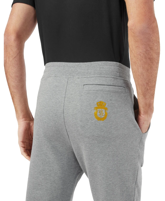 Спортивные брюки Billionaire сочетают в себе комфорт мягкого хлопкового флиса и культовую вышивку с гербом бренда, создавая изысканный повседневный образ. Эти джоггеры созданы для стильного отдыха и повседневной носки. Ключевые особенности: Серый | Хлопковый флис | Мягкий хлопковый флис | Пояс на шнурке | Боковые карманы | Герб, вышитый золотой нитью на спине | Ребристые манжеты