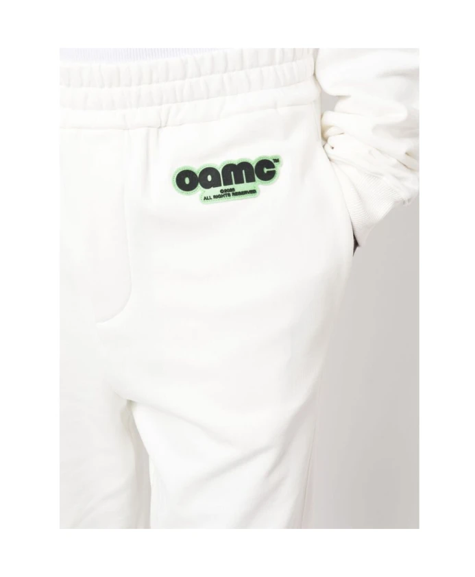 Подчеркните свой повседневный стиль с помощью этих спортивных брюк OAMC с нашивкой-логотипом. Изготовленные из белого хлопка, эти спортивные брюки имеют нашивку-логотип сбоку, эластичный пояс, задний карман и эластичные манжеты на щиколотках для комфортной посадки.